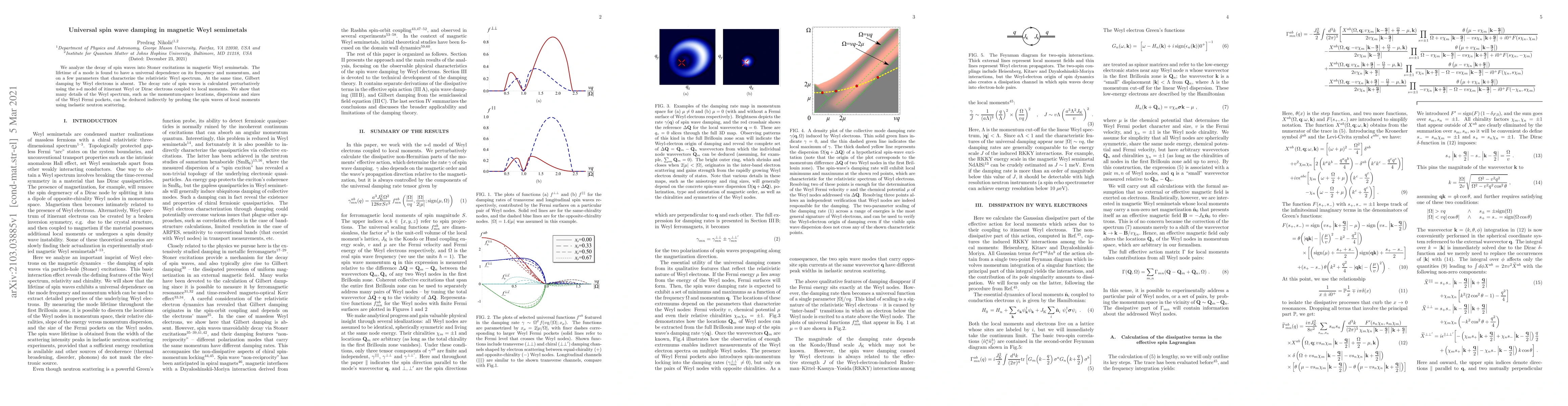This paper investigates the decay of spin waves in magnetic Weyl semimetals, revealing a universal dependence of their lifetime on frequency, momentum, and Weyl spectrum parameters. Contrary to Gilbert damping, spin wave damping occurs via Stoner excitations, and the study suggests that spin wave probing can indirectly reveal details of the Weyl spectrum.