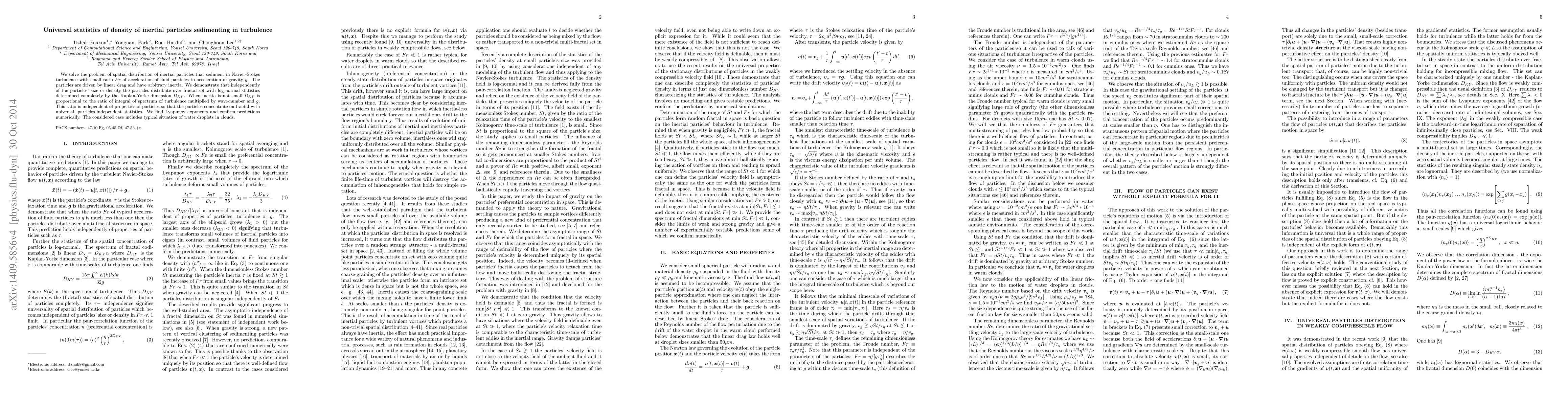 This paper investigates the spatial distribution of inertial particles in turbulent fluid flow, showing that their density follows log-normal statistics determined by the Kaplan-Yorke dimension $D_{KY}$. Regardless of particle size or density, the fractal concentration pattern is universal and independent of particle properties.
