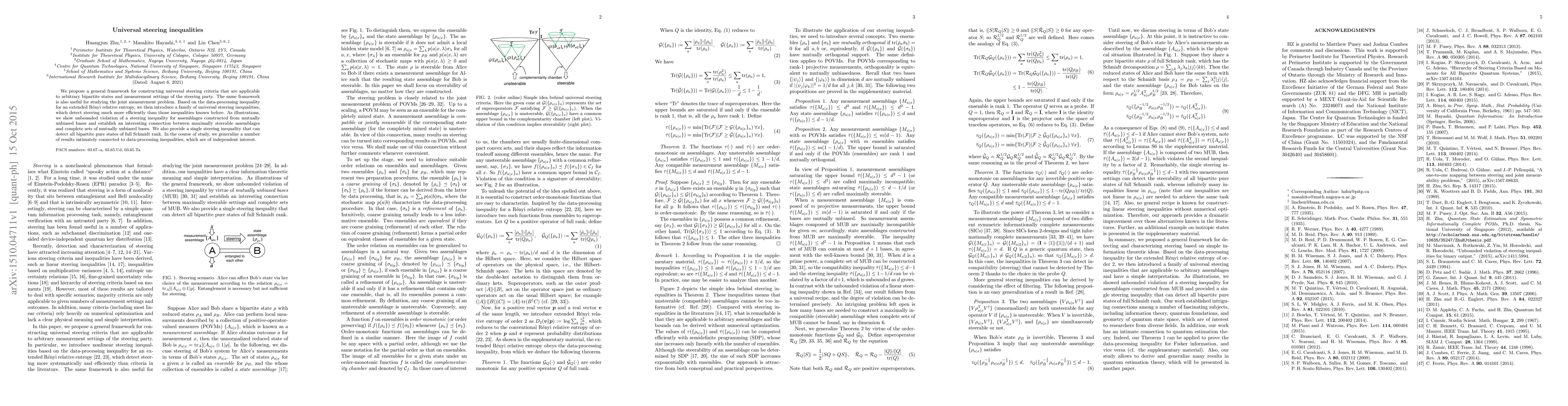 We propose a general framework for constructing universal steering criteria that are applicable to arbitrary bipartite states and measurement settings of the steering party. The same framework is also useful for studying the joint measurement problem. Based on the data-processing inequality for an extended R\'enyi relative entropy, we then introduce a family of universal steering inequalities, which detect steering much more efficiently than those inequalities known before. As illustrations, we show unbounded violation of a steering inequality for assemblages constructed from mutually unbiased bases and establish an interesting connection between maximally steerable assemblages and complete sets of mutually unbiased bases. We also provide a single steering inequality that can detect all bipartite pure states of full Schmidt rank. In the course of study, we generalize a number of results intimately connected to data-processing inequalities, which are of independent interest.