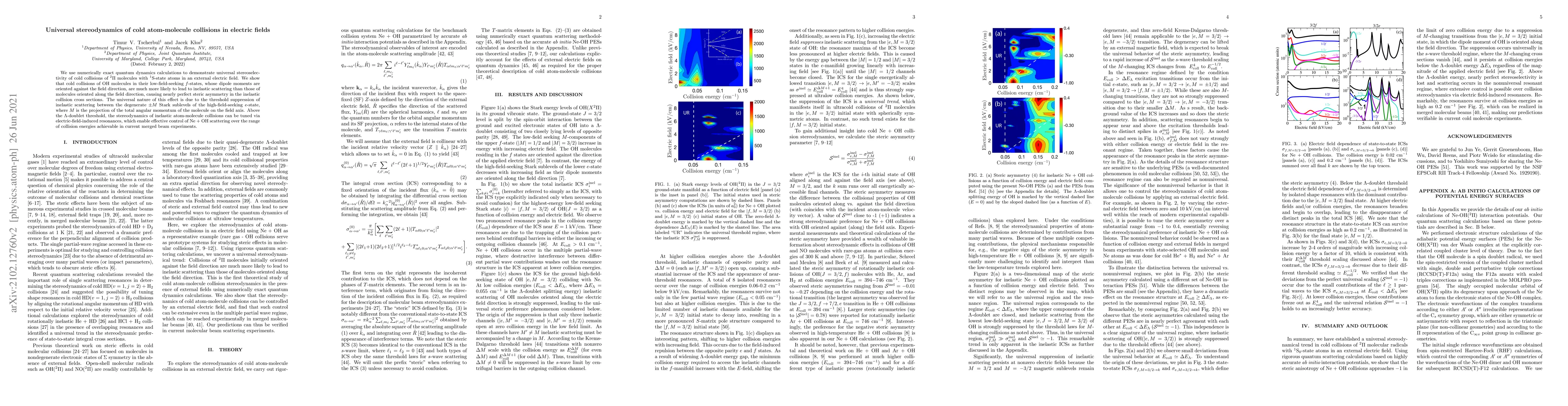 This paper demonstrates universal stereoselectivity in cold atom-molecule collisions of OH molecules in electric fields, showing that inelastic scattering is significantly more likely for molecules oriented against the field. The effect is due to threshold suppression of scattering between high-field-seeking states, enabling precise control over collision dynamics via electric-field-induced resonances.