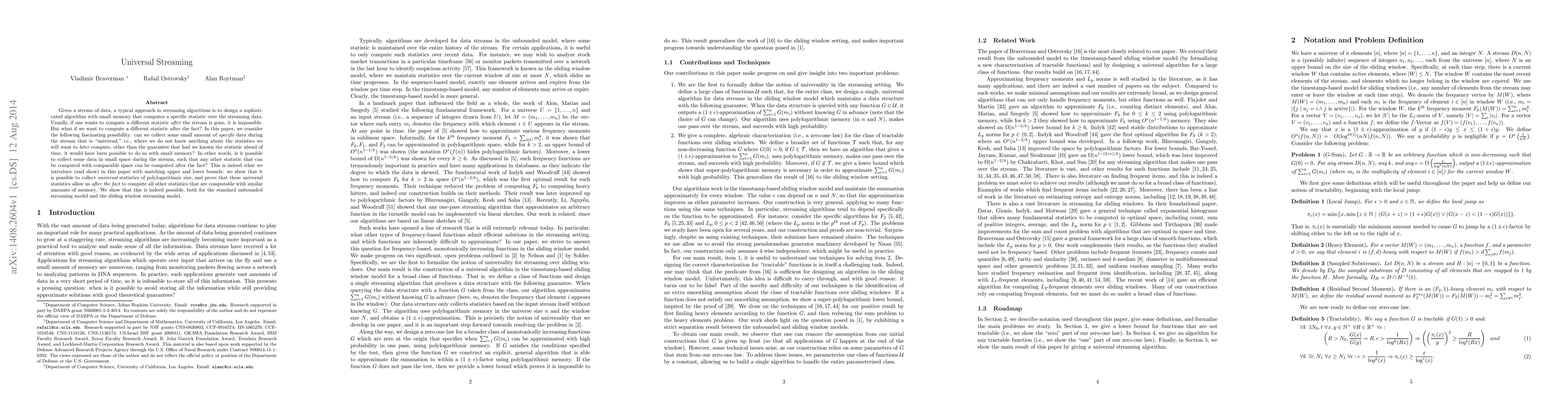 Researchers develop a method to collect universal data during a stream that can be used later to compute statistics with similar memory requirements, solving the challenge of adapting to changing statistics.