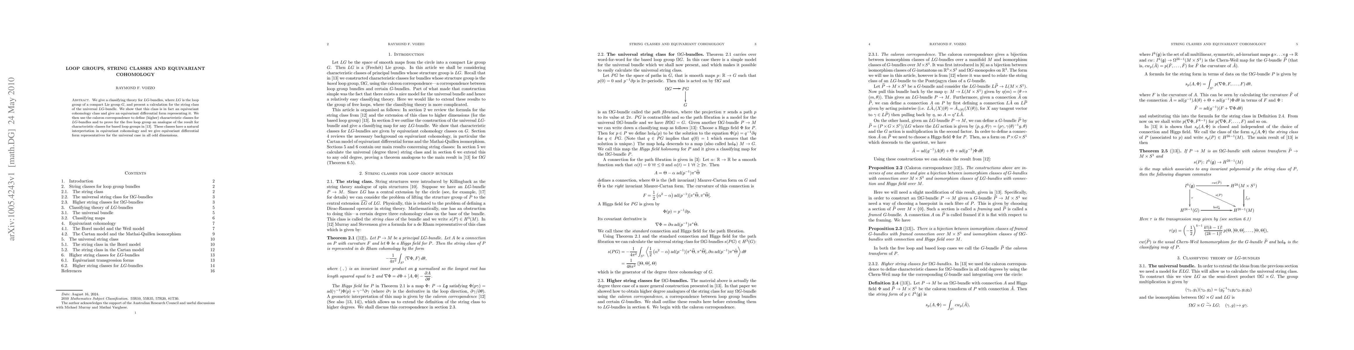This paper develops a classifying theory for $LG$-bundles, presenting a string class for the universal $LG$-bundle that is shown to be an equivariant cohomology class. It also defines higher characteristic classes using the caloron correspondence and provides equivariant differential form representatives for these classes in odd dimensions.