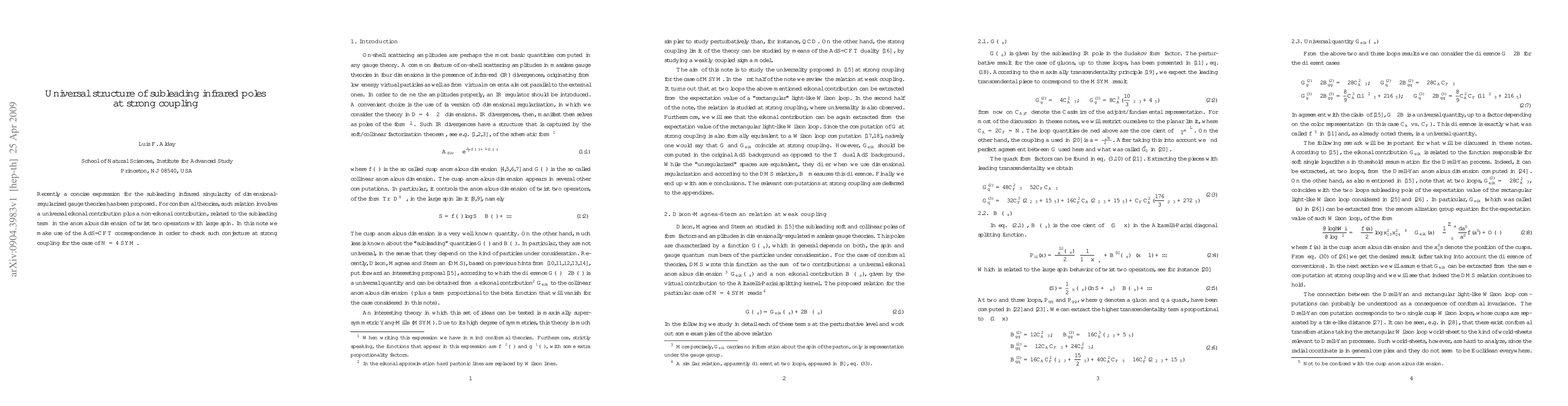 This paper proposes a universal expression for the subleading infrared singularity in dimensional-regularized gauge theories, involving both eikonal and non-eikonal contributions. It uses the AdS/CFT correspondence to verify this conjecture at strong coupling for N=4 SYM.