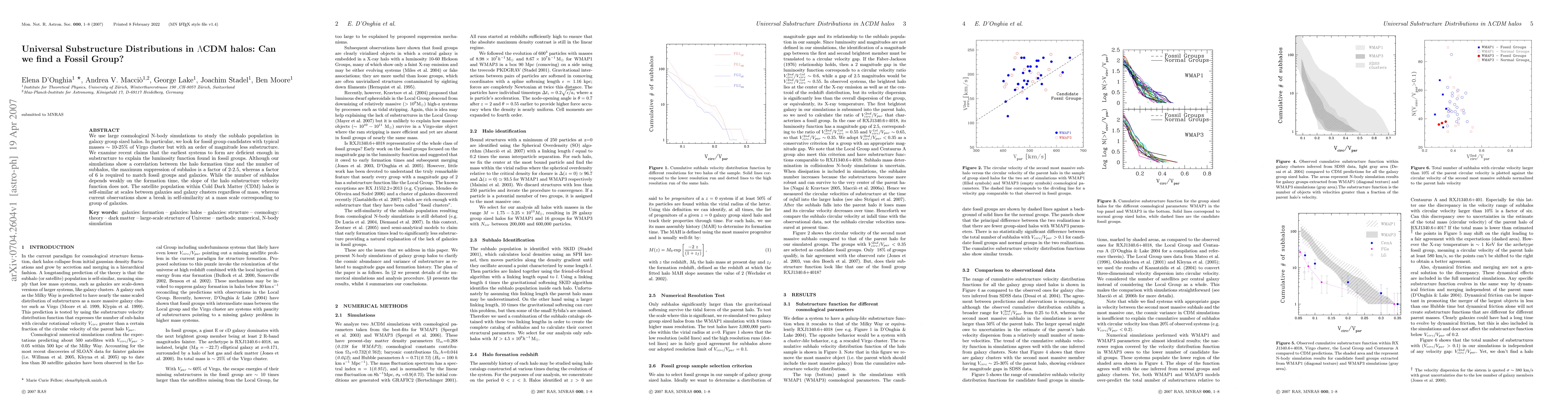 We use large cosmological N-body simulations to study the subhalo population in galaxy group sized halos. In particular, we look for fossil group candidates with typical masses ~10-25% of Virgo cluster but with an order of magnitude less substructure. We examine recent claims that the earliest systems to form are deficient enough in substructure to explain the luminosity function found in fossil groups. Although our simulations show a correlation between the halo formation time and the number of subhalos, the maximum suppression of subhalos is a factor of 2-2.5, whereas a factor of 6 is required to match fossil groups and galaxies. While the number of subhalos depends weakly on the formation time, the slope of the halo substructure velocity function does not. The satellite population within Cold Dark Matter (CDM) halos is self-similar at scales between galaxies and galaxy clusters regardless of mass, whereas current observations show a break in self-similarity at a mass scale corresponding to group of galaxies.