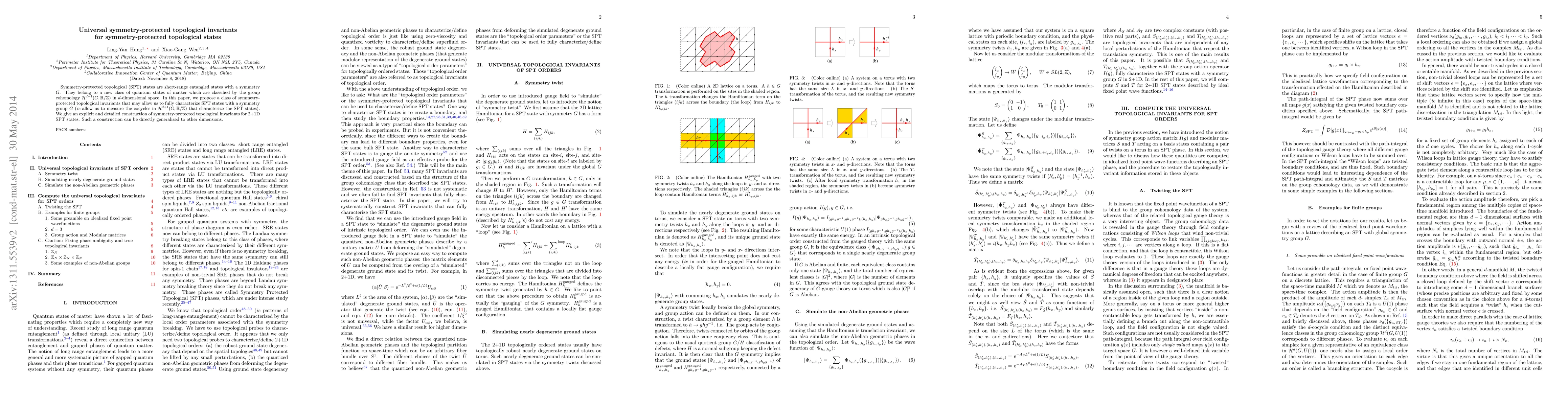 This paper proposes new symmetry-protected topological (SPT) invariants that classify SPT states by their symmetry group G, utilizing group cohomology $H^{d+1}(G,\mathbb{R}/\mathbb{Z})$. It provides an explicit construction for 2+1D SPT states, which can be generalized to higher dimensions.