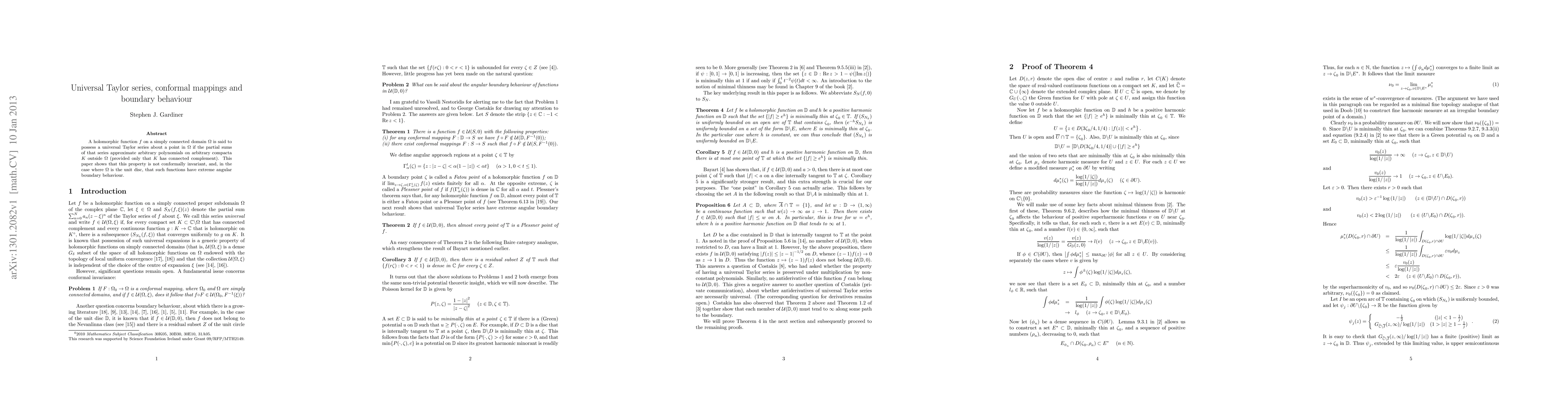 A holomorphic function f on a simply connected domain {\Omega} is said to possess a universal Taylor series about a point in {\Omega} if the partial sums of that series approximate arbitrary polynomials on arbitrary compacta K outside {\Omega} (provided only that K has connected complement). This paper shows that this property is not conformally invariant, and, in the case where {\Omega} is the unit disc, that such functions have extreme angular boundary behaviour.