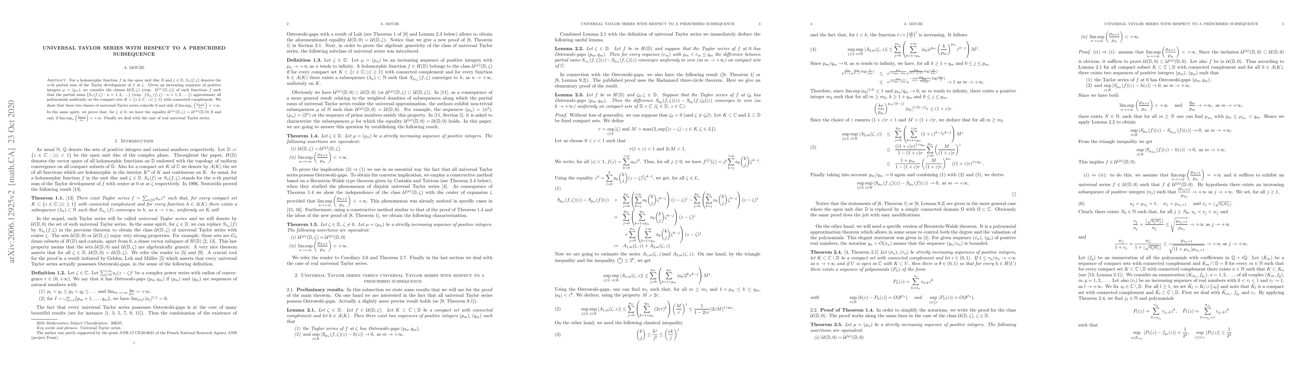 For a holomorphic function $f$ in the open unit disc $\mathbb{D}$ and $\zeta\in\mathbb{D}$, $S_n(f,\zeta)$ denotes the $n$-th partial sum of the Taylor development of $f$ at $\zeta$. Given an increasing sequence of positive integers $\mu=(\mu_n)$, we consider the classes $\mathcal{U}(\mathbb{D},\zeta)$ (resp. $\mathcal{U}^{(\mu)}(\mathbb{D},\zeta)$) of such functions $f$ such that the partial sums $\{S_n(f,\zeta):n=1,2,\dots\}$ (resp. $\{S_{\mu_n}(f,\zeta):n=1,2,\dots\}$) approximate all polynomials uniformly on the compact sets $K\subset\{z\in\mathbb{C}:\vert z\vert\geq 1\}$ with connected complement. We show that these two classes of universal Taylor series coincide if and only if $\limsup_n\left(\frac{\mu_{n+1}}{\mu_n}\right)<+\infty$. In the same spirit, we prove that, for $\zeta\ne 0,$ we have the equality $\mathcal{U}^{(\mu)}(\mathbb{D},\zeta)=\mathcal{U}^{(\mu)}(\mathbb{D},0)$ if and only if $\limsup_n\left(\frac{\mu_{n+1}}{\mu_n}\right)<+\infty$. Finally we deal with the case of real universal Taylor series.