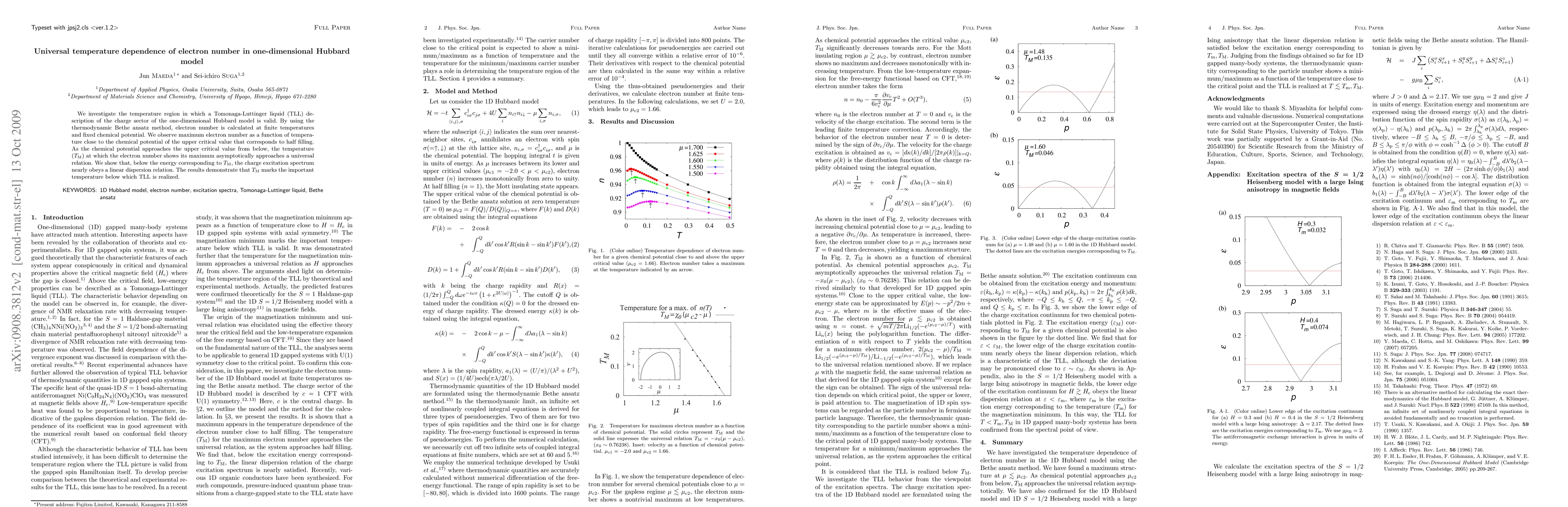 Researchers investigate the temperature dependence of electron number in a one-dimensional Hubbard model, finding that a specific temperature mark the realization of Tomonaga-Luttinger liquid behavior.