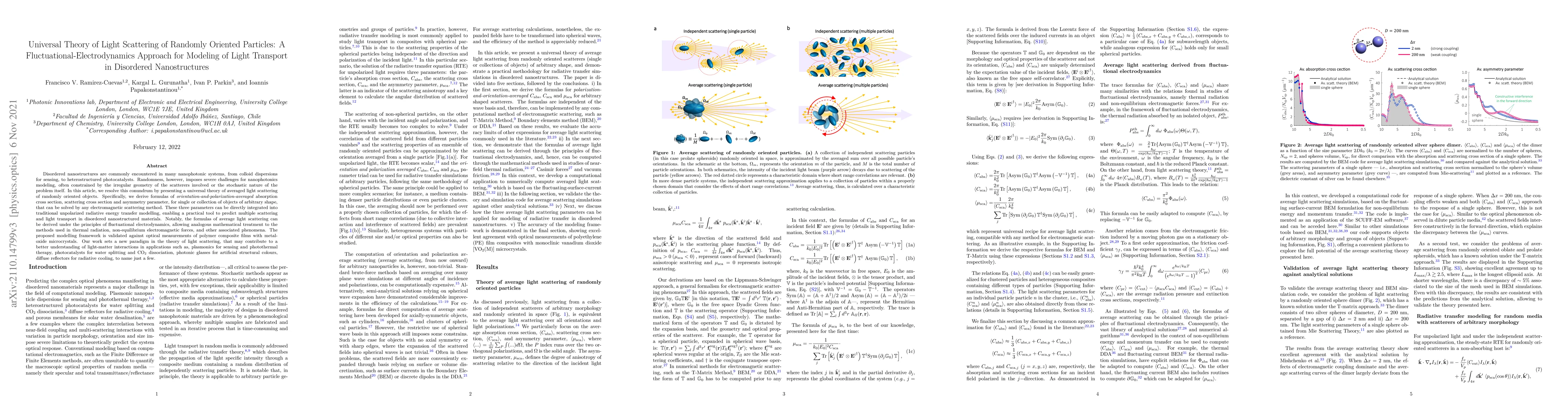This paper presents a universal theory of light scattering for randomly oriented particles using fluctuational electrodynamics, providing averaged absorption and scattering cross sections and asymmetry parameters. These parameters enable accurate modeling of light transport in disordered nanostructures, validated by optical measurements, and have broad applications in nanophotonics.
