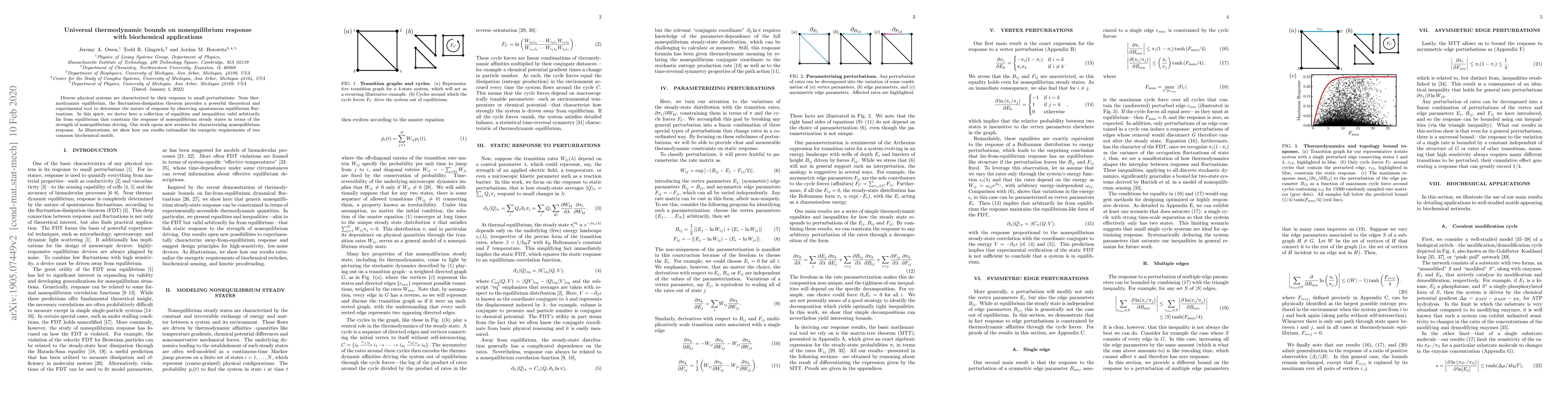 This paper derives universal thermodynamic bounds on nonequilibrium response, extending beyond equilibrium conditions. The findings provide new insights into characterizing nonequilibrium steady states and illustrate their application to the energetic requirements of common biochemical motifs.