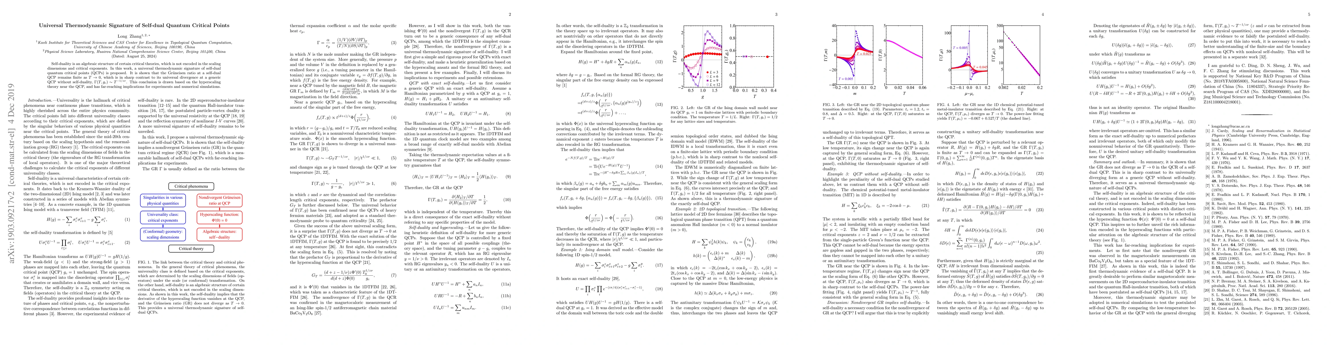 This paper proposes a universal thermodynamic signature for self-dual quantum critical points, showing that the Gr\"uneisen ratio remains finite at $T\rightarrow 0$, contrasting with its divergence at non-self-dual critical points. This finding, derived from hyperscaling theory, has significant implications for experimental and numerical studies.