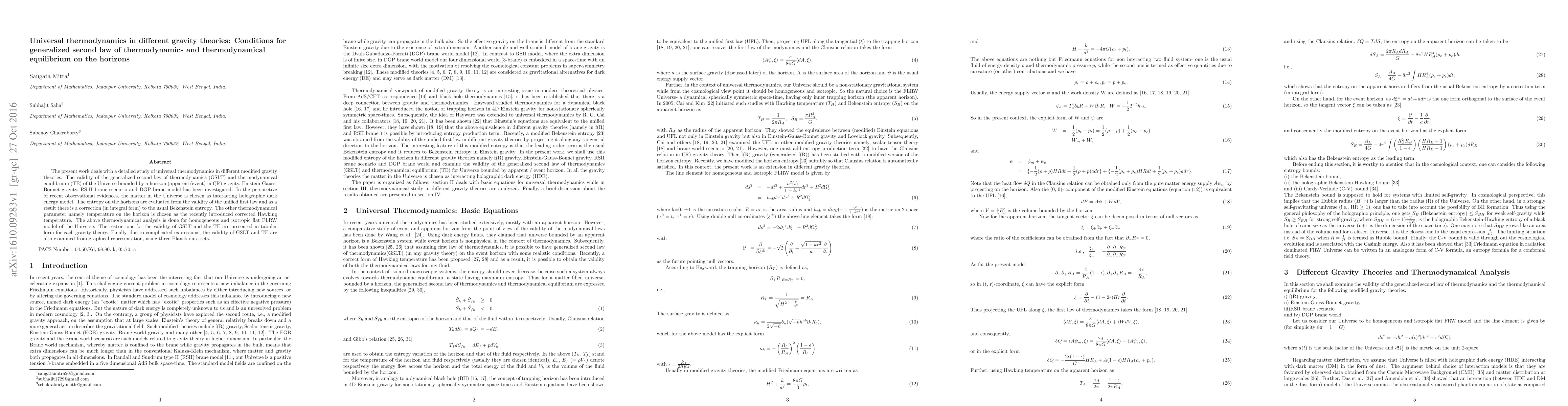 The present work deals with a detailed study of universal thermodynamics in different modified gravity theories. The validity of the generalized second law of thermodynamics (GSLT) and thermodynamical equilibrium (TE) of the Universe bounded by a horizon (apparent/event) in f(R)-gravity, Einstein-Gauss-Bonnet gravity, RS-II brane scenario and DGP brane model has been investigated. In the perspective of recent observational evidences, the matter in the Universe is chosen as interacting holographic dark energy model. The entropy on the horizons are evaluated from the validity of the unified first law and as a result there is a correction (in integral form) to the usual Bekenstein entropy. The other thermodynamical parameter namely temperature on the horizon is chosen as the recently introduced corrected Hawking temperature. The above thermodynamical analysis is done for homogeneous and isotropic flat FLRW model of the Universe. The restrictions for the validity of GSLT and the TE are presented in tabular form for each gravity theory. Finally, due to complicated expressions, the validity of GSLT and TE are also examined from graphical representation, using three Planck data sets.