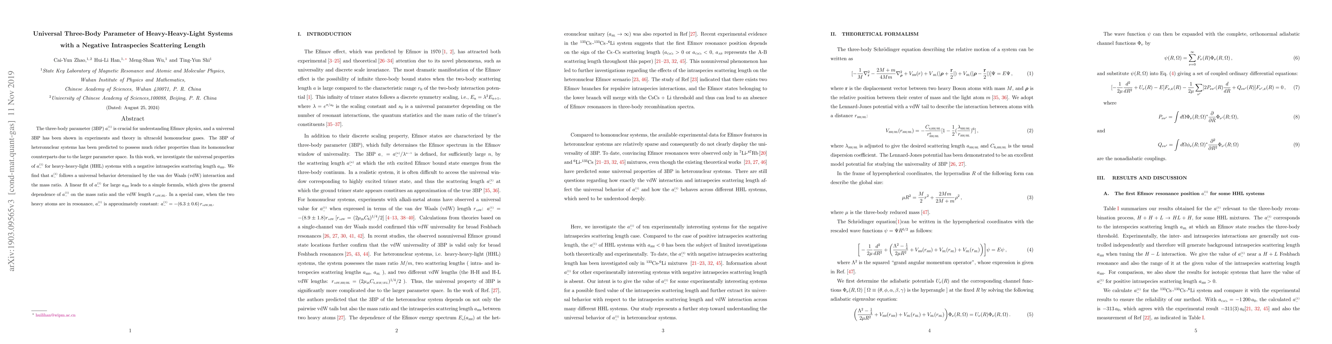 This paper investigates the universal Three-Body Parameter $a^{\scriptscriptstyle(1)}_{\scriptscriptstyle-}$ for Heavy-Heavy-Light systems with negative intraspecies scattering length, revealing its dependence on van der Waals interaction and mass ratio. The study finds a universal behavior and provides an analytic formula for $a^{\scriptscriptstyle(1)}_{\scriptscriptstyle-}$, especially noting its constant value when the two heavy atoms are in resonance.