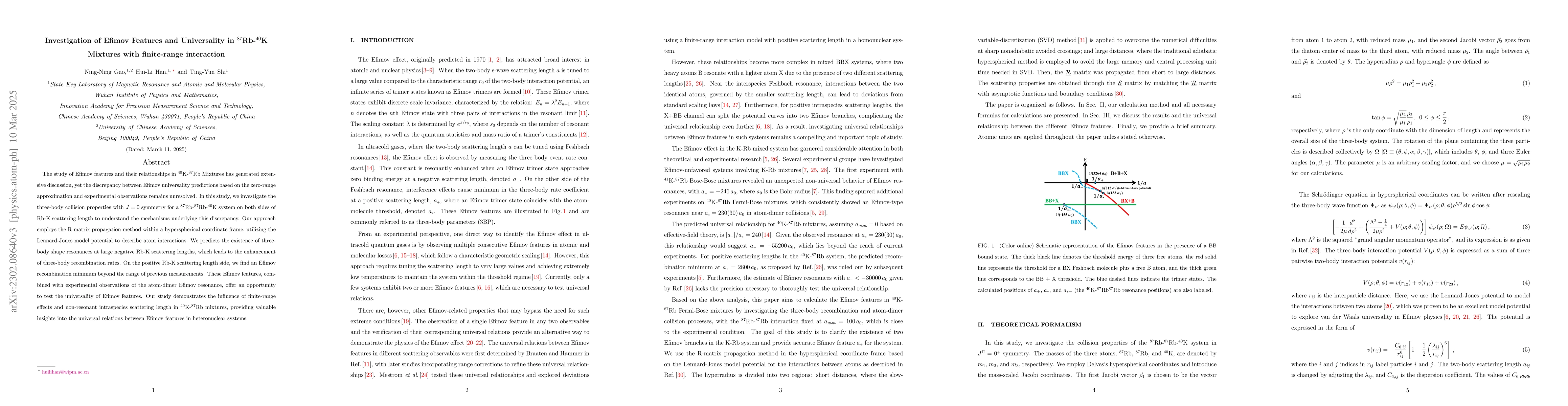 The breakdown of Efimov universal relations between resonances and interference features in ultracold $^{40}$K-$^{87}$Rb mixtures has sparked much discussion. In this study, we investigate the atom-dimer elastic scattering and three-body recombination (TBR) rates with $J=0$ symmetry for a $^{87}$Rb-$^{87}$Rb-$^{40}$K system to understand the mechanisms underlying this breakdown. We use the R-matrix propagation method in a hyperspherical coordinate frame with the Lennard-Jones model potential describing the interactions between atoms. We extract the atom-dimer scattering length, cross sections and three-body recombination rates with a finite intraspecies scattering length. An atom-dimer elastic scattering resonance at negative interspecies scattering length is found, which is due to the presence of the near-threshold trimer state at the atom-dimer threshold ($^{40}$K + $^{87}$Rb$^{87}$Rb). In addition, we predict an Efimov recombination minima at positive interspecies scattering length, which is outside the range of previous measurements. Our calculations show that the breakdown of the universal relations predicted by zero-range theory can be attributed to the effective range corrections and finite intraspecies scattering length. The present results help elucidate the universal relations between Efimov features as well as the importance of finite-range corrections for mixed systems.