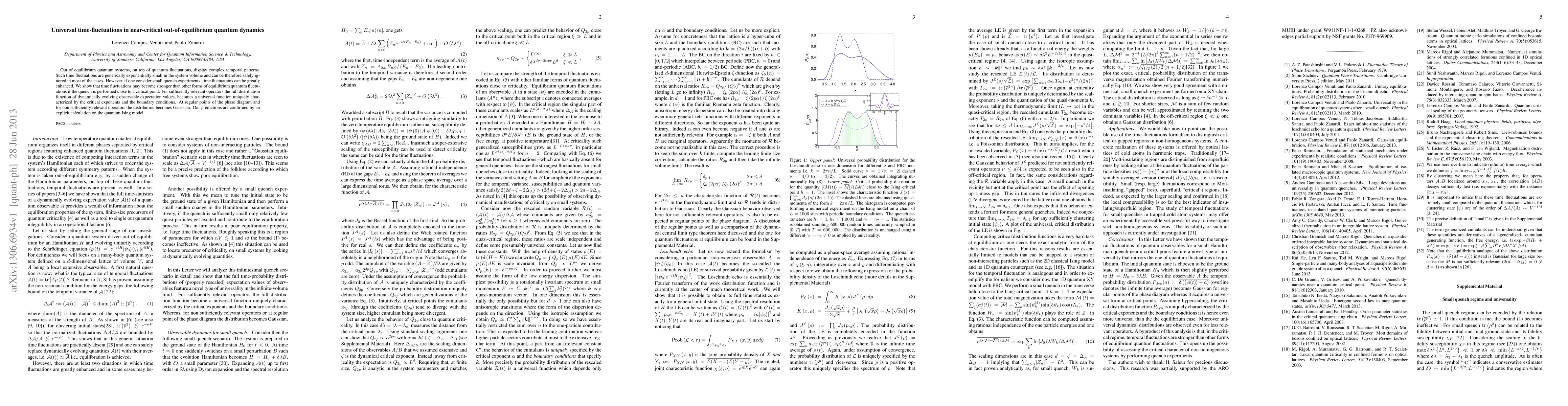 Out of equilibrium quantum systems, on top of quantum fluctuations, display complex temporal patterns. Such time fluctuations are generically exponentially small in the system volume and can be therefore safely ignored in most of the cases. However, if one consider small quench experiments, time fluctuations can be greatly enhanced. We show that time fluctuations may become stronger than other forms of equilibrium quantum fluctuations if the quench is performed close to a critical point. For sufficiently relevant operators the full distribution function of dynamically evolving observable expectation values, becomes a universal function uniquely characterized by the critical exponents and the boundary conditions. At regular points of the phase diagram and for non sufficiently relevant operators the distribution becomes Gaussian. Our predictions are confirmed by an explicit calculation on the quantum Ising model.