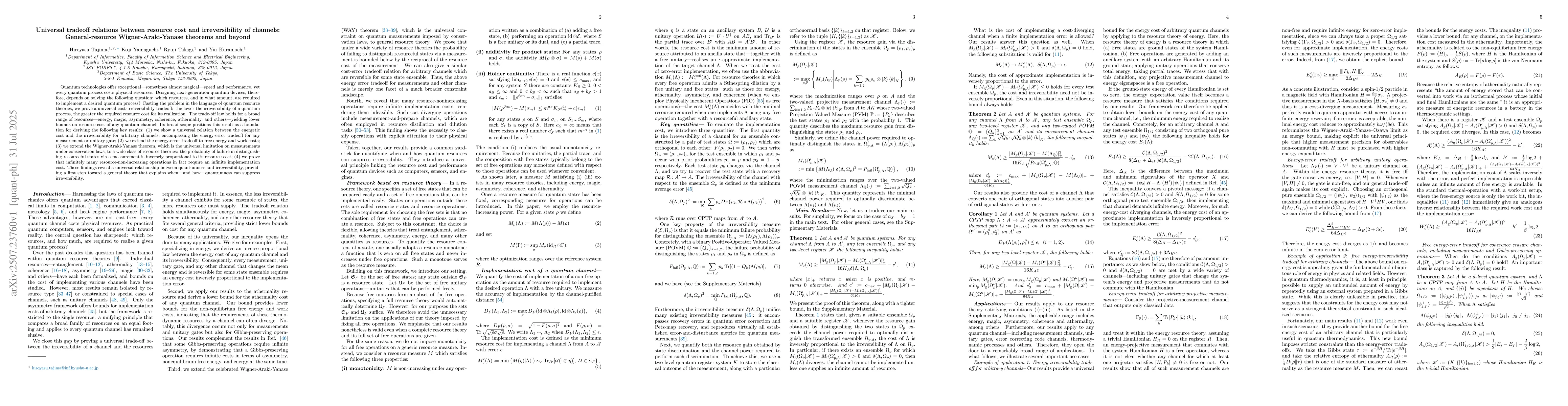 Quantum technologies offer exceptional -- sometimes almost magical -- speed and performance, yet every quantum process costs physical resources. Designing next-generation quantum devices, therefore, depends on solving the following question: which resources, and in what amount, are required to implement a desired quantum process? Casting the problem in the language of quantum resource theories, we prove a universal cost-irreversibility tradeoff: the lower the irreversibility of a quantum process, the greater the required resource cost for its realization. The trade-off law holds for a broad range of resources -- energy, magic, asymmetry, coherence, athermality, and others -- yielding lower bounds on resource cost of any quantum channel. Its broad scope positions this result as a foundation for deriving the following key results: (1) we show a universal relation between the energetic cost and the irreversibility for arbitrary channels, encompassing the energy-error tradeoff for any measurement or unitary gate; (2) we extend the energy-error tradeoff to free energy and work costs; (3) we extend the Wigner-Araki-Yanase theorem, which is the universal limitation on measurements under conservation laws, to a wide class of resource theories: the probability of failure in distinguishing resourceful states via a measurement is inversely proportional to its resource cost; (4) we prove that infinitely many resource-non-increasing operations in fact require an infinite implementation cost. These findings reveal a universal relationship between quantumness and irreversibility, providing a first step toward a general theory that explains when -- and how -- quantumness can suppress irreversibility.