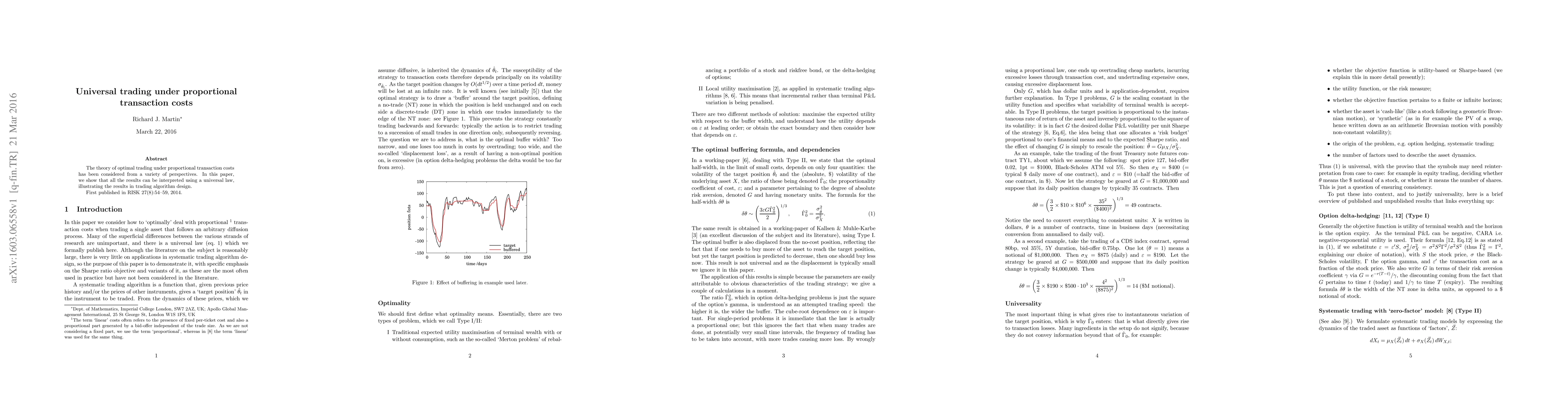 This paper demonstrates that optimal trading strategies under proportional transaction costs can be unified through a universal law, providing a comprehensive framework for trading algorithm design. The findings reveal a consistent approach applicable across various trading scenarios.