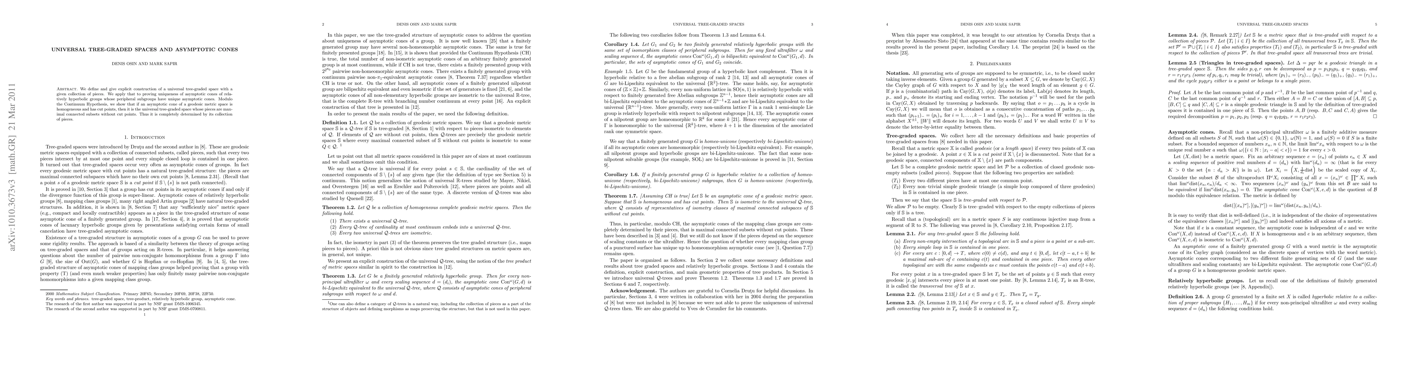 The paper constructs the universal tree-graded space for a given collection of pieces and uses it to prove the uniqueness of asymptotic cones in relatively hyperbolic groups. It concludes that homogeneous asymptotic cones with cut points are determined by their maximal connected subsets without their own cut points.