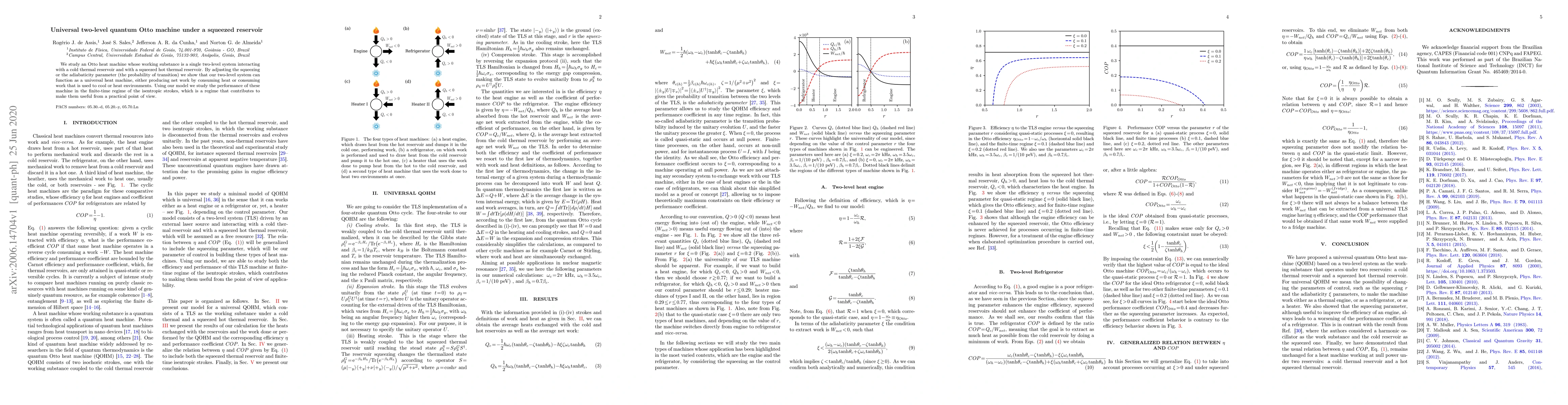 Researchers developed a universal two-level quantum Otto machine that can produce net work from heat or consume work to cool/heated environments, using a squeezed thermal reservoir.