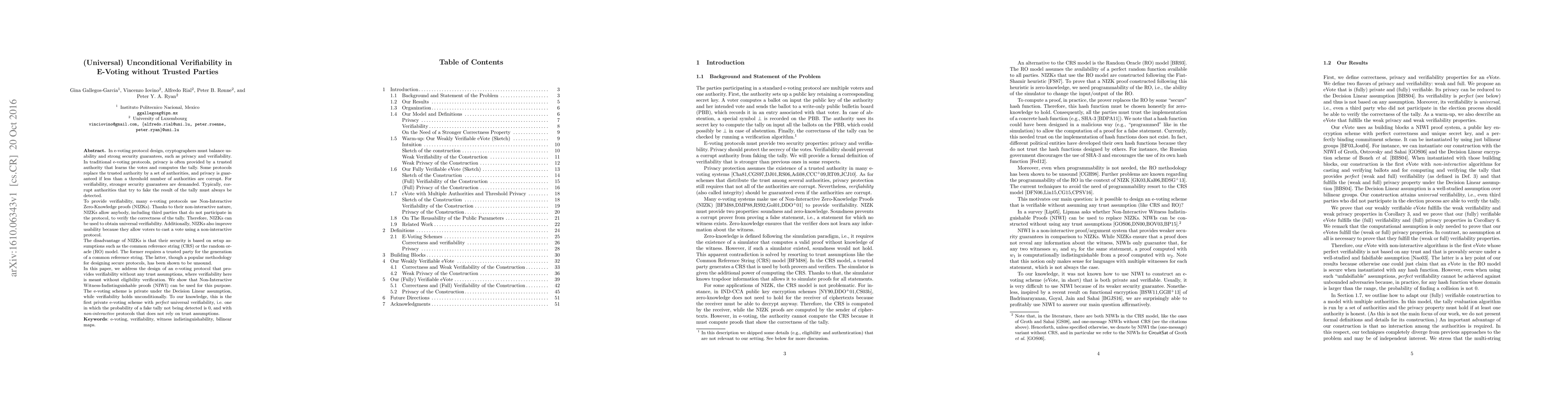 This paper presents an e-voting protocol that achieves unconditional verifiability without relying on trusted parties or setup assumptions. The protocol uses Non-Interactive Witness-Indistinguishable proofs (NIWI) to ensure that any fake tally cannot go undetected, providing perfect universal verifiability while maintaining privacy under the Decision Linear assumption.