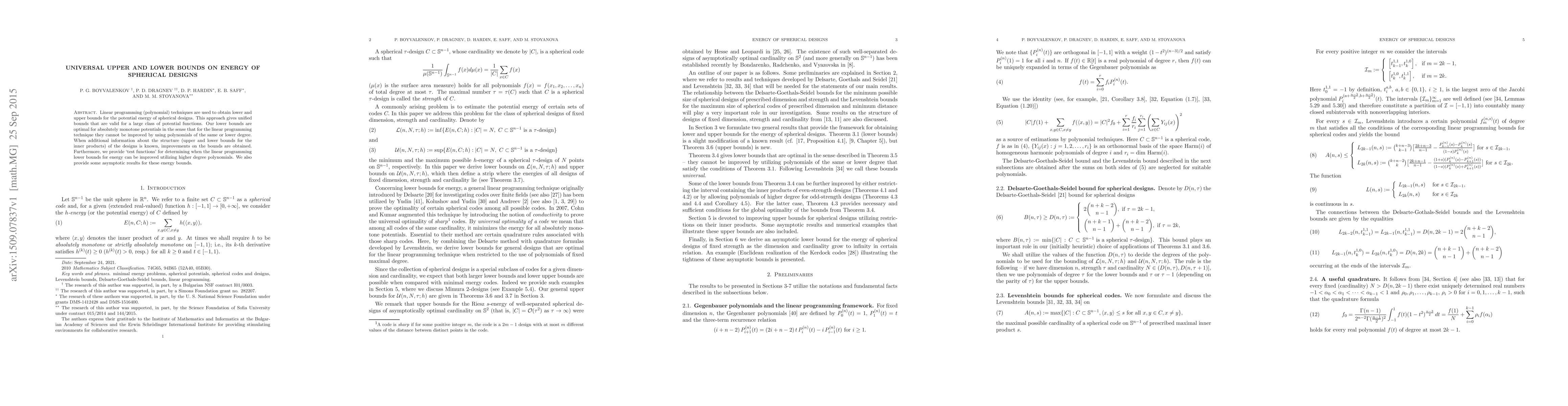 P. Boyvalenkov, S. Borodachov, M. Stoyanova et al.