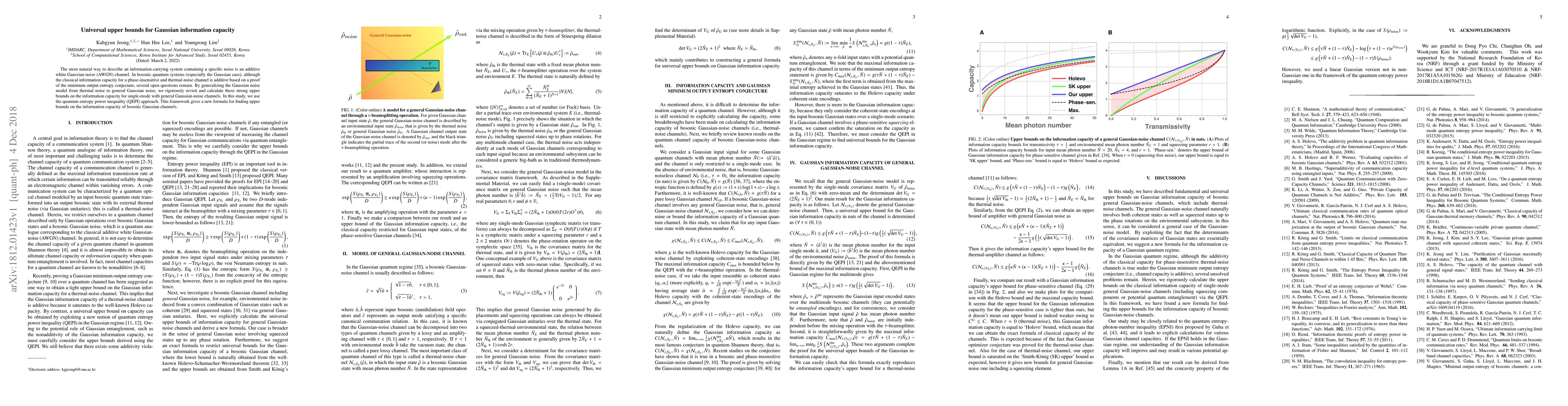 This paper establishes universal upper bounds for the information capacity of single-mode bosonic Gaussian channels under general Gaussian noise, using the quantum entropy power inequality (QEPI) approach to derive a new formula for these bounds. Despite the classical capacity being additive for thermal noise, the study generalizes to broader Gaussian noise scenarios.