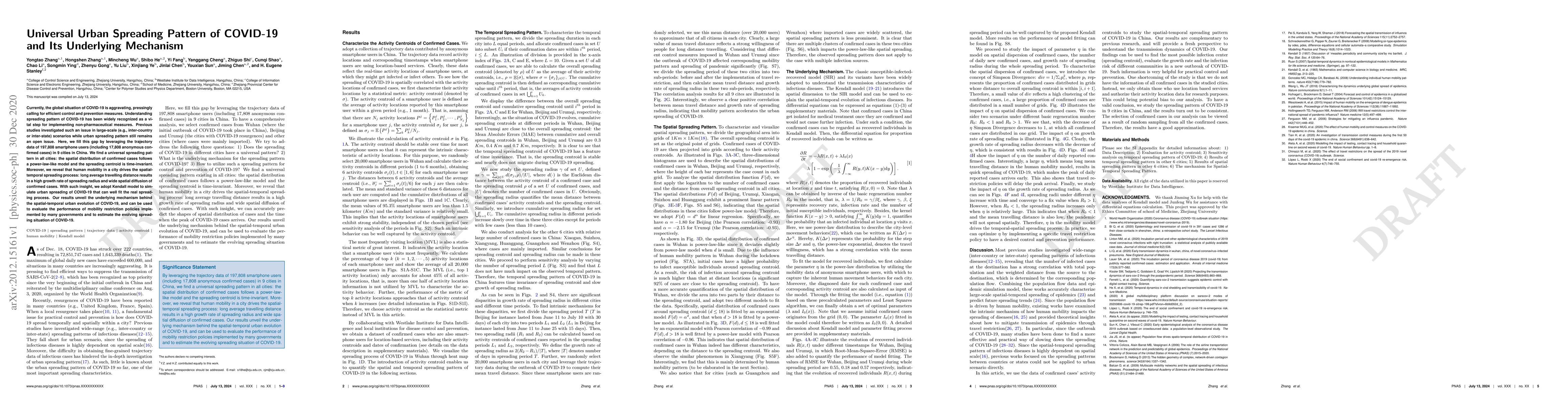 Currently, the global situation of COVID-19 is aggravating, pressingly calling for efficient control and prevention measures. Understanding spreading pattern of COVID-19 has been widely recognized as a vital step for implementing non-pharmaceutical measures. Previous studies investigated such an issue in large-scale (e.g., inter-country or inter-state) scenarios while urban spreading pattern still remains an open issue. Here, we fill this gap by leveraging the trajectory data of 197,808 smartphone users (including 17,808 anonymous confirmed cases) in 9 cities in China. We find a universal spreading pattern in all cities: the spatial distribution of confirmed cases follows a power-law-like model and the spreading centroid is time-invariant. Moreover, we reveal that human mobility in a city drives the spatialtemporal spreading process: long average travelling distance results in a high growth rate of spreading radius and wide spatial diffusion of confirmed cases. With such insight, we adopt Kendall model to simulate urban spreading of COVID-19 that can well fit the real spreading process. Our results unveil the underlying mechanism behind the spatial-temporal urban evolution of COVID-19, and can be used to evaluate the performance of mobility restriction policies implemented by many governments and to estimate the evolving spreading situation of COVID-19.