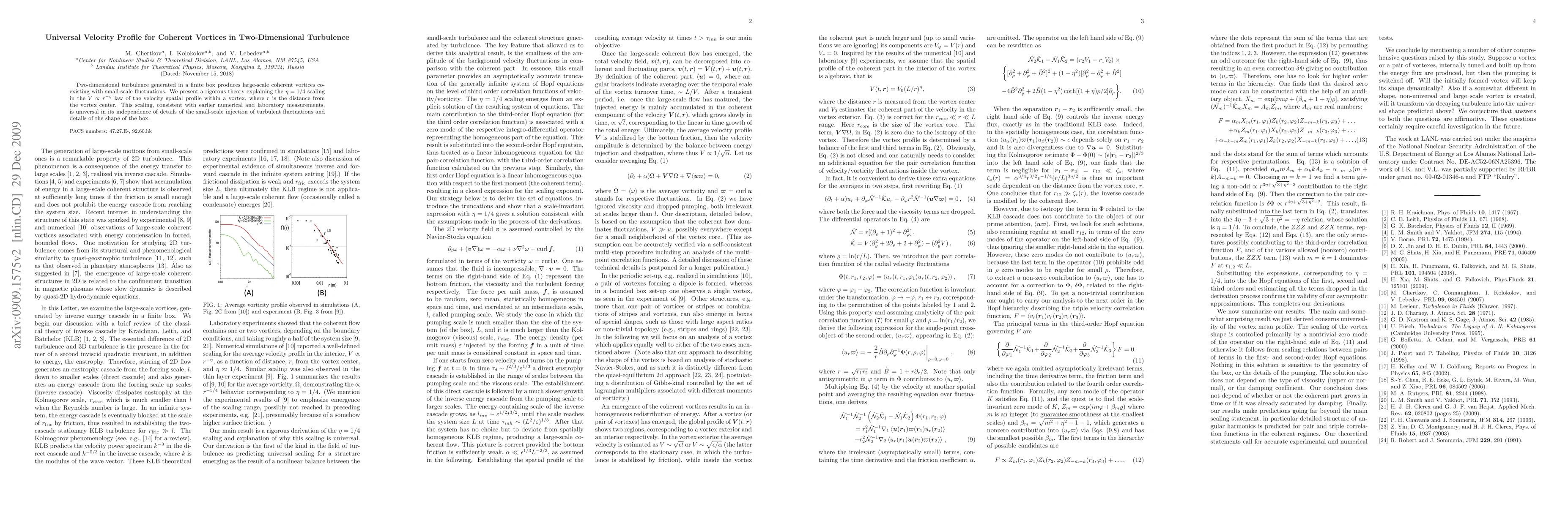 Researchers found a universal velocity profile for coherent vortices in 2D turbulence, explaining why the distance from a vortex center affects its speed in a predictable way. The discovery is consistent with earlier measurements and has implications for understanding large-scale turbulent flows.