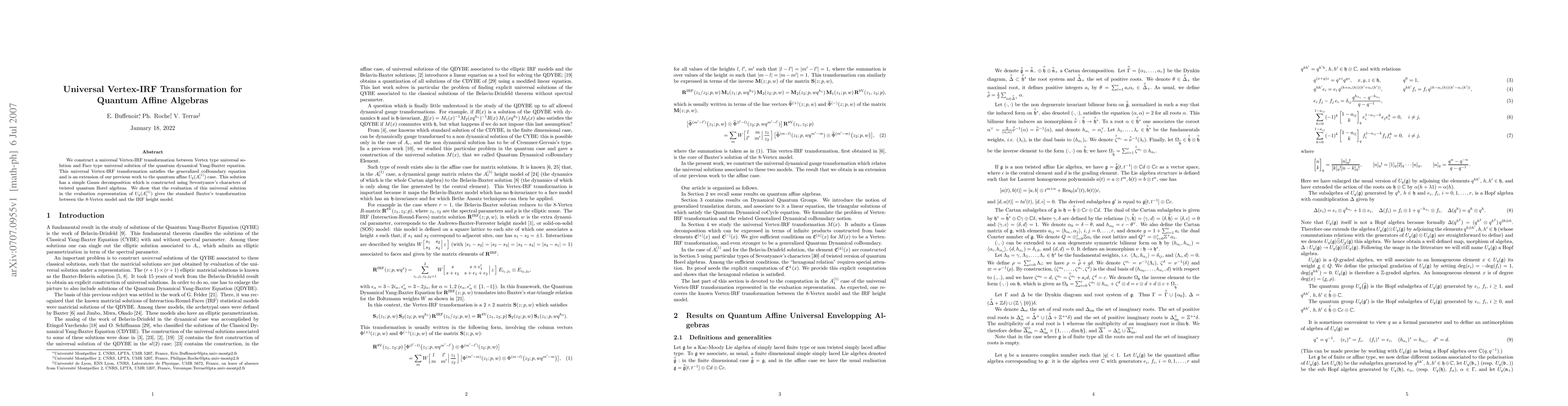 This paper constructs a universal Vertex-IRF transformation for quantum affine algebras, extending previous work to the $U_q(A^{(1)}_r)$ case. The transformation satisfies the generalized coBoundary equation and uses Sevostyanov's characters for a simple Gauss decomposition, ultimately linking the 8-Vertex model to the IRF height model.