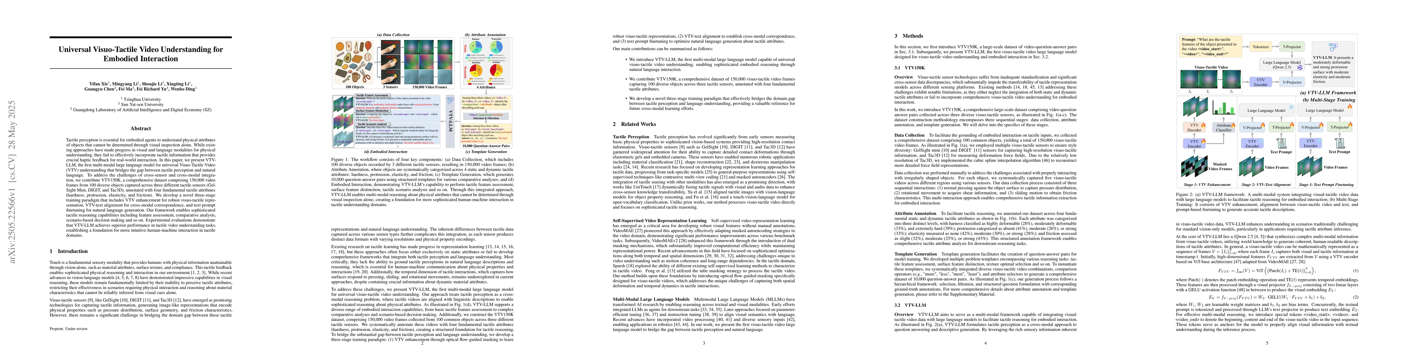 The research introduces VTV-LLM, a multi-modal large language model for universal Visuo-Tactile Video (VTV) understanding. It employs a three-stage training paradigm involving VTV enhancement, VTV-text alignment, and text prompt finetuning, alongside a dataset called VTV150K containing 150,000 video frames from 100 diverse objects annotated with tactile attributes.