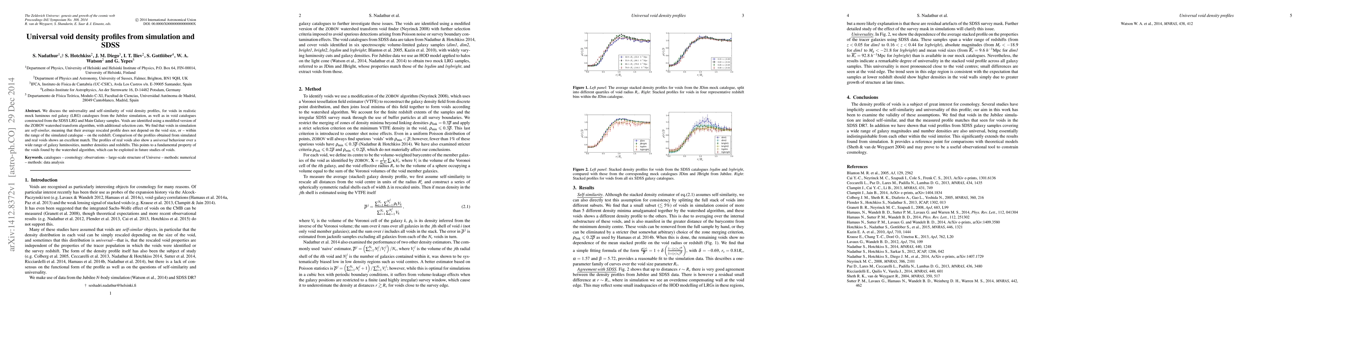 This paper investigates the universality and self-similarity of void density profiles in both simulated and real galaxy catalogues from the SDSS, finding that voids exhibit a fundamental, scale-independent behavior across different galaxy luminosities and redshifts. The study uses a modified ZOBOV algorithm to identify voids and confirms the similarity between simulated and observed void profiles.