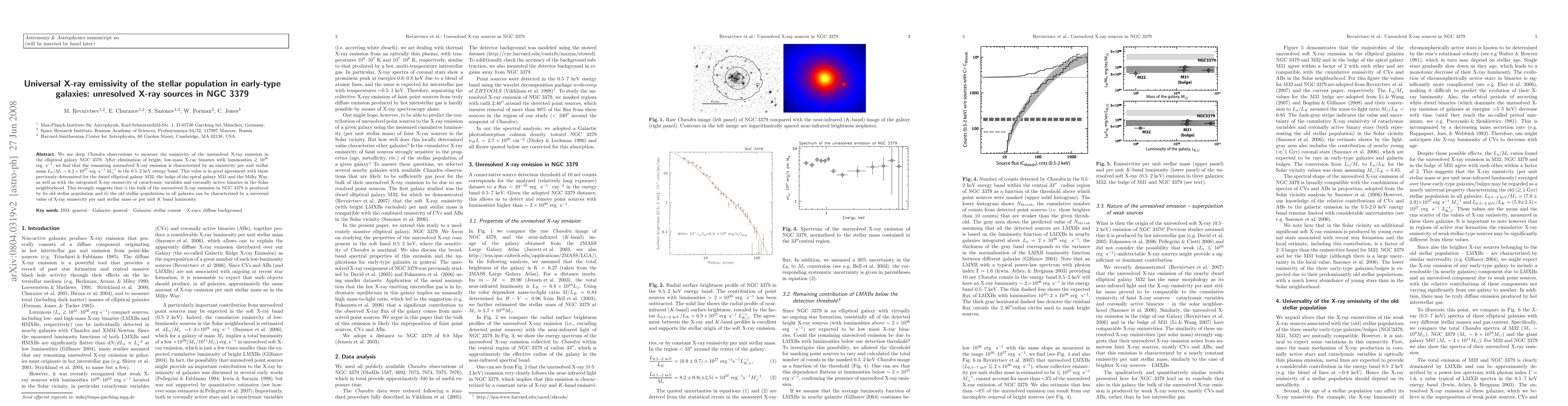 This study uses deep Chandra observations to determine the X-ray emissivity of unresolved sources in the elliptical galaxy NGC 3379, finding a value of L_x/M_stars ~8.2x10^{27} erg/s/M_sun. This universal emissivity suggests that old stellar populations in galaxies consistently produce similar X-ray emissions.