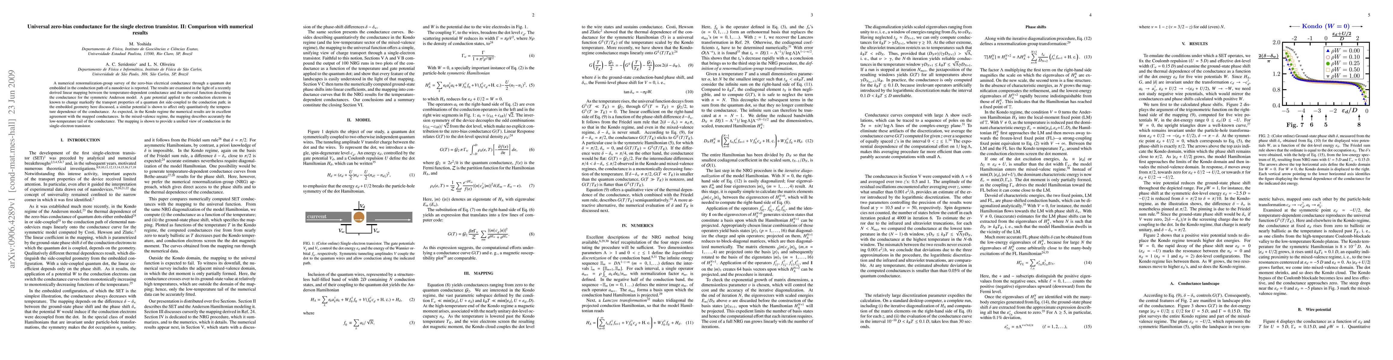 This paper reports numerical renormalization-group results on zero-bias conductance in a quantum dot embedded in a nanodevice, comparing them to a linear mapping derived for the symmetric Anderson model. The study finds excellent agreement in the Kondo regime and accurate low-temperature conductance in the mixed-valence regime, providing a unified view of conduction in single-electron transistors.
