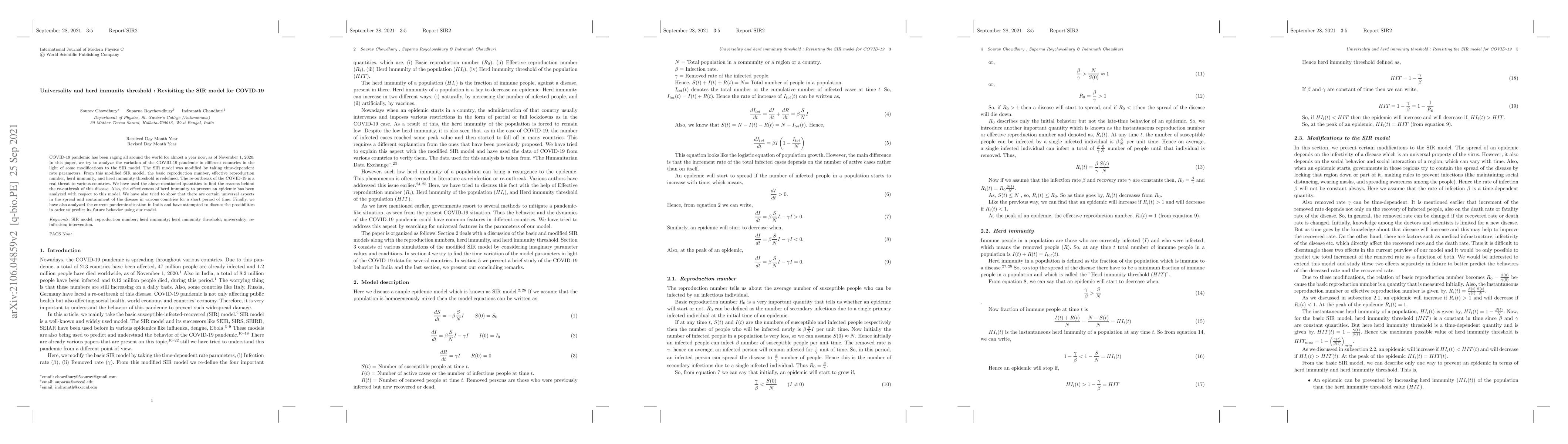 This paper modifies the SIR model to analyze COVID-19's variation across countries, redefining the basic and effective reproduction numbers, herd immunity, and threshold. It examines the reasons behind re-outbreaks and the universality of disease spread, with a specific focus on India's pandemic situation.