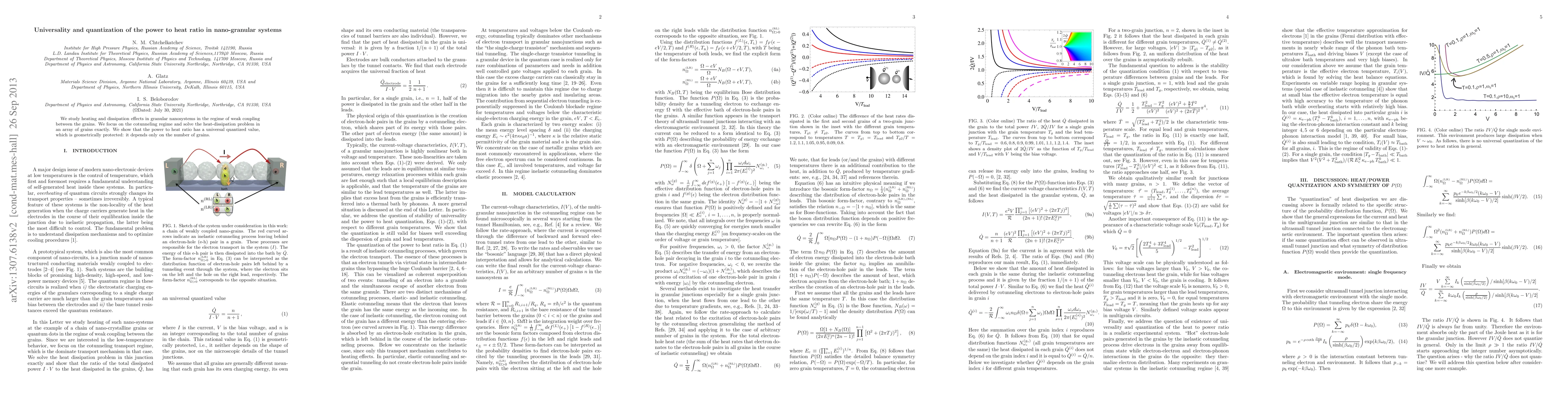 We study heating and dissipation effects in granular nanosystems in the regime of weak coupling between the grains. We focus on the cotunneling regime and solve the heat-dissipation problem in an array of grains exactly. We show that the power to heat ratio has a universal quantized value, which is geometrically protected: it depends only on the number of grains.