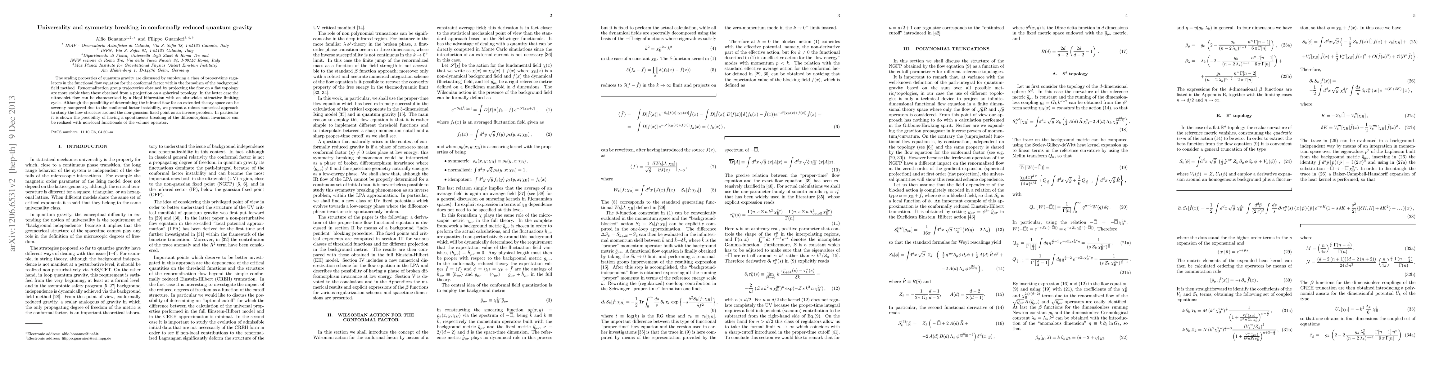 The work presents a unique combination of proper-time regulators and the background field method to study quantum gravity, uncovering new aspects of symmetry breaking and fixed point structures.