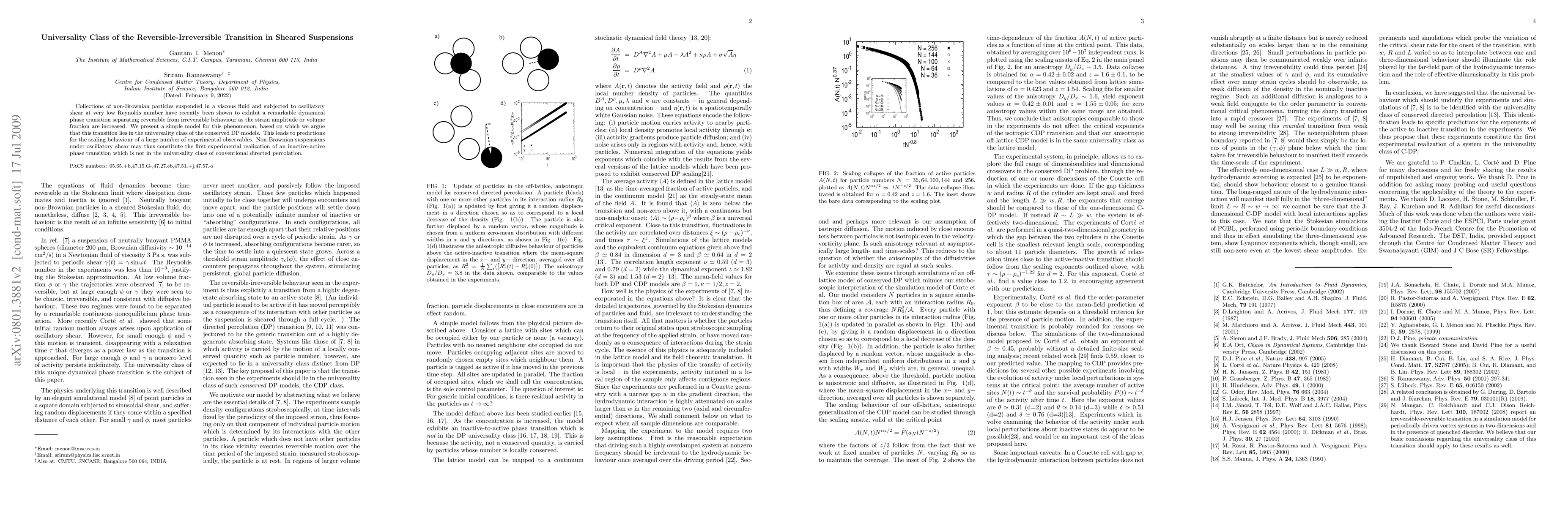 Collections of non-Brownian particles suspended in a viscous fluid and subjected to oscillatory shear at very low Reynolds number have recently been shown to exhibit a remarkable dynamical phase transition separating reversible from irreversible behaviour as the strain amplitude or volume fraction are increased. We present a simple model for this phenomenon, based on which we argue that this transition lies in the universality class of the conserved DP models or, equivalently, the Manna model. This leads to predictions for the scaling behaviour of a large number of experimental observables. Non-Brownian suspensions under oscillatory shear may thus constitute the first experimental realization of an inactive-active phase transition which is not in the universality class of conventional directed percolation.