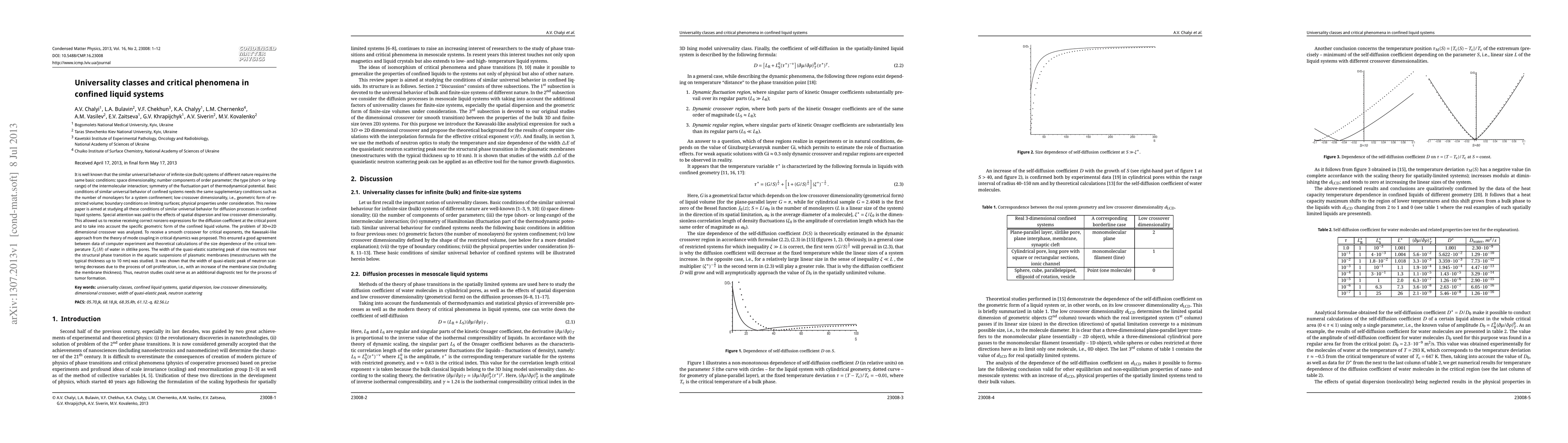 Researchers studied universal behavior in confined liquid systems, finding that low crossover dimensionality and spatial dispersion affect diffusion coefficient calculations. They proposed a method to achieve smooth crossover of critical exponents between 3D and 2D dimensions.