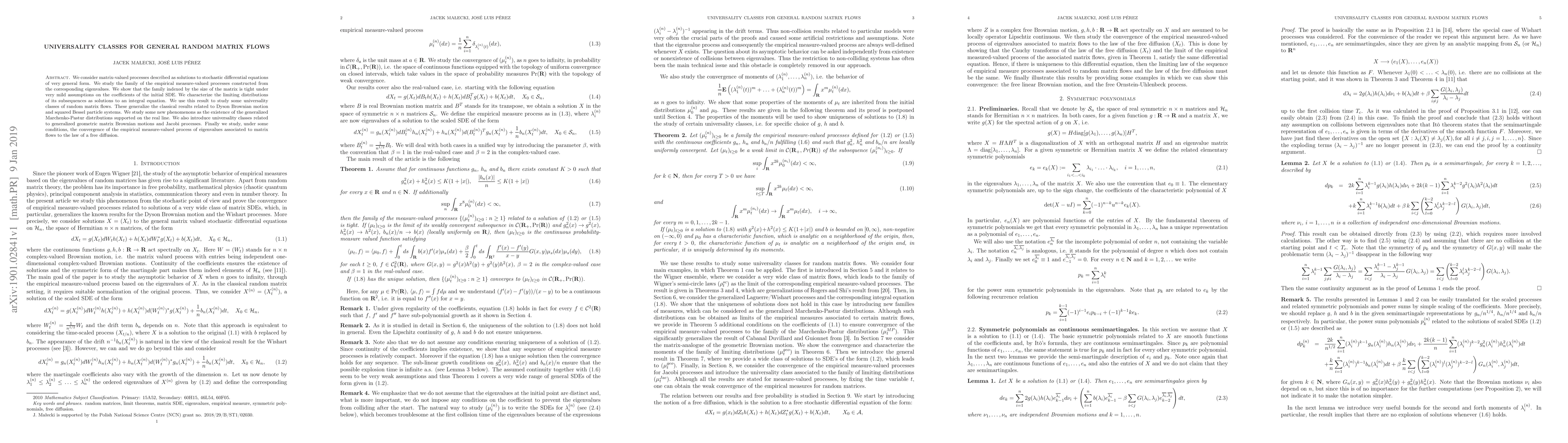 This paper studies matrix-valued processes and their limiting distributions, introducing new universality classes for random matrix flows that generalize classical results in Dyson Brownian motion and particle systems.