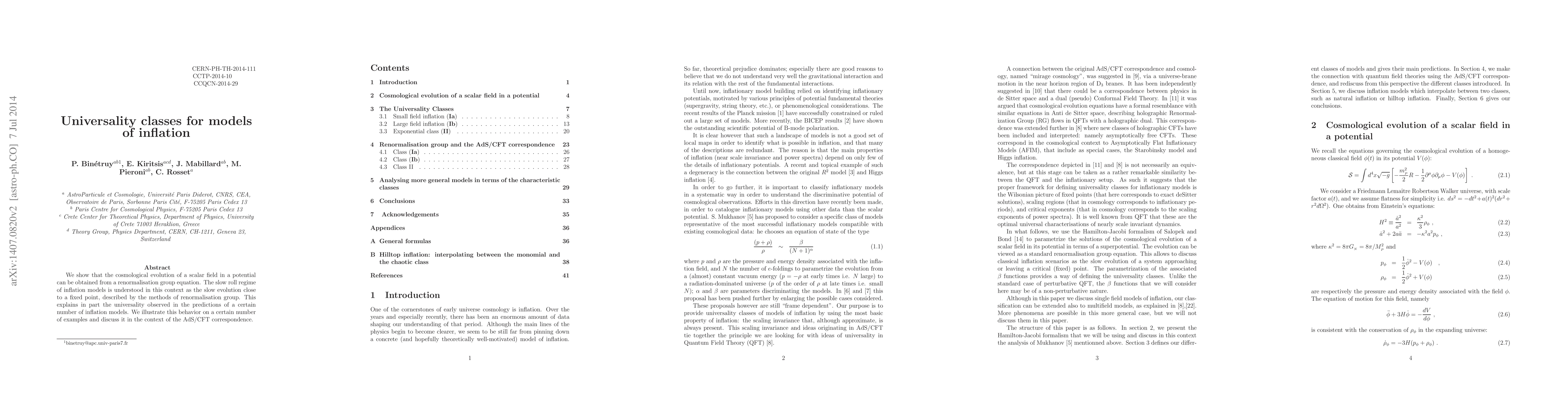 We show that the cosmological evolution of a scalar field in a potential can be obtained from a renormalisation group equation. The slow roll regime of inflation models is understood in this context as the slow evolution close to a fixed point, described by the methods of renormalisation group. This explains in part the universality observed in the predictions of a certain number of inflation models. We illustrate this behavior on a certain number of examples and discuss it in the context of the AdS/CFT correspondence.