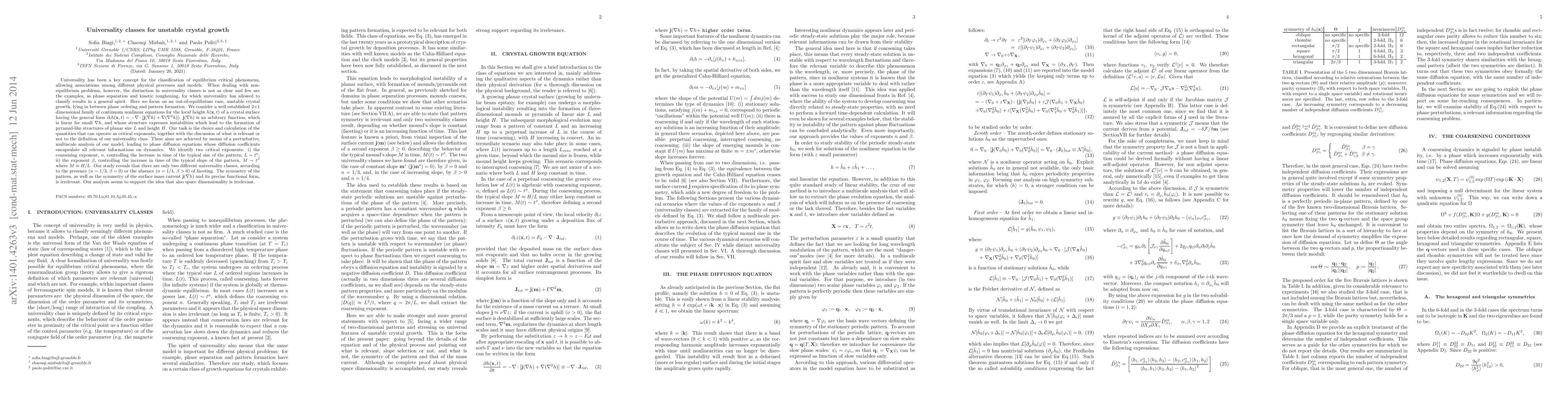 This paper explores the classification of universality classes for unstable crystal growth, focusing on non-equilibrium phenomena. It identifies two critical exponents and reveals that there are only two distinct universality classes for this out-of-equilibrium process, achieved through a perturbative, multiscale analysis.