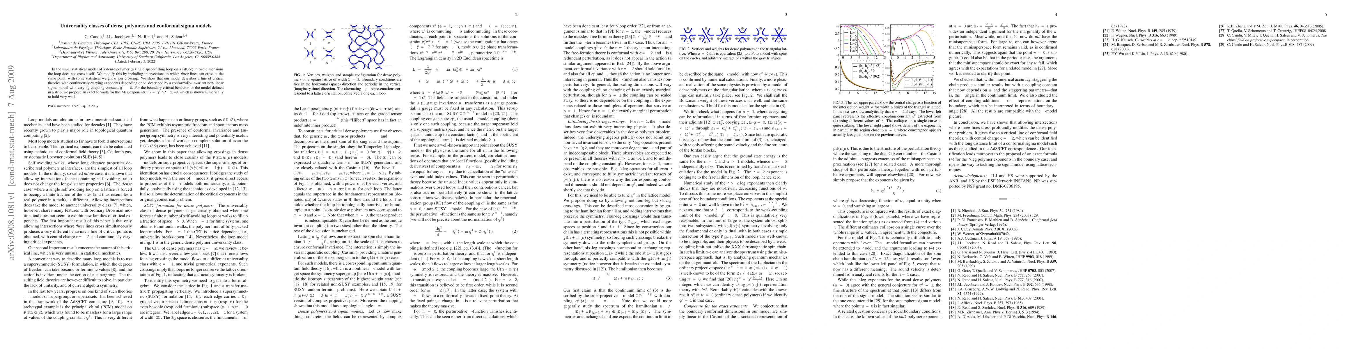 In the usual statistical model of a dense polymer (a single space-filling loop on a lattice) in two dimensions the loop does not cross itself. We modify this by including intersections in which {\em three} lines can cross at the same point, with some statistical weight w per crossing. We show that our model describes a line of critical theories with continuously-varying exponents depending on w, described by a conformally-invariant non-linear sigma model with varying coupling constant g_\sigma^2 >0. For the boundary critical behavior, or the model defined in a strip, we propose an exact formula for the \ell-leg exponents, h_\ell=g_\sigma^2 \ell(\ell-2)/8, which is shown numerically to hold very well.