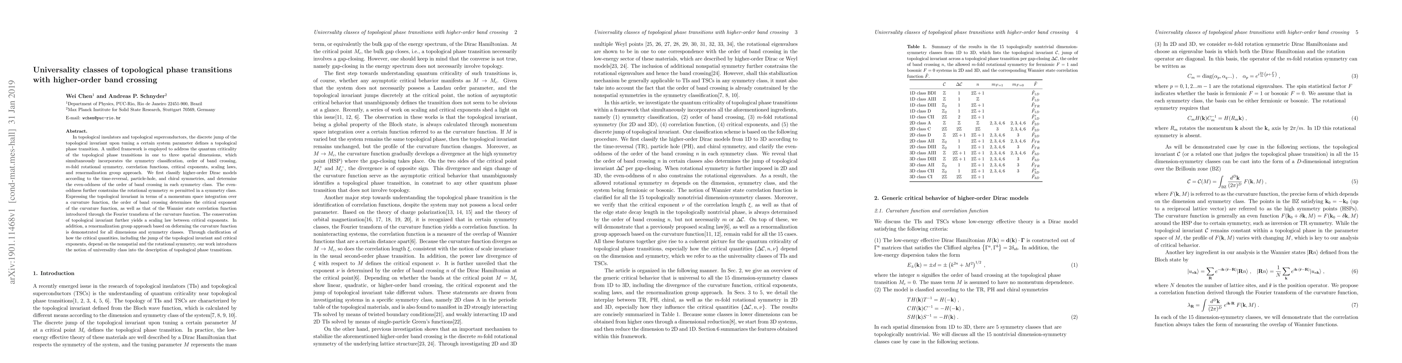 This paper develops a unified framework for understanding topological phase transitions in insulators and superconductors, focusing on higher-order band crossings. It classifies Dirac models based on symmetries and determines how the order of band crossing influences critical exponents and scaling laws, introducing the concept of universality classes for topological transitions.
