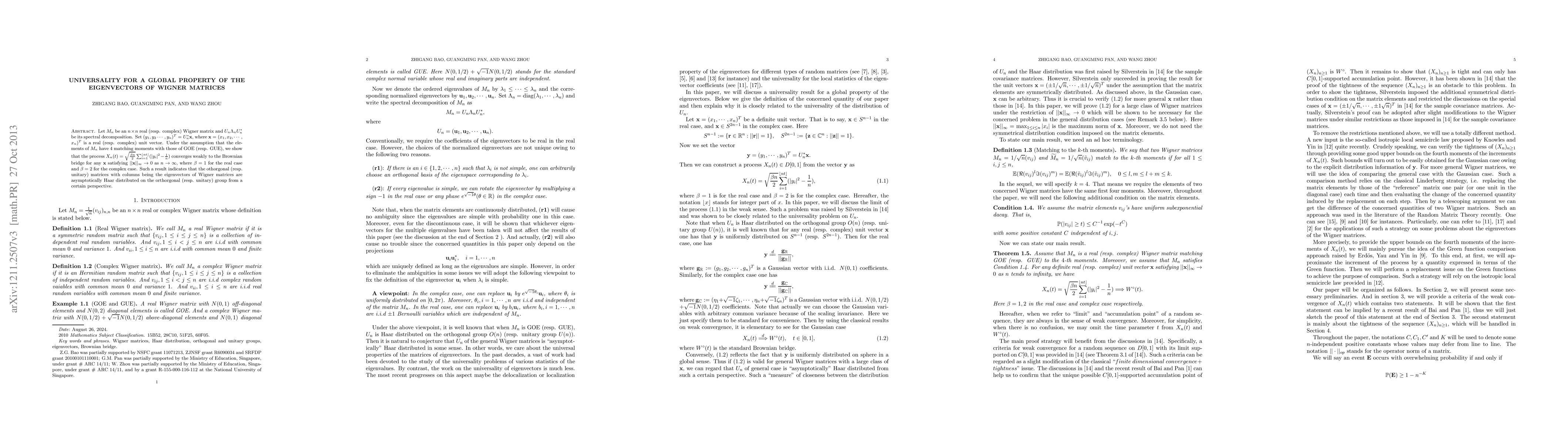 Let $M_n$ be an $n\times n$ real (resp. complex) Wigner matrix and $U_n\Lambda_n U_n^*$ be its spectral decomposition. Set $(y_1,y_2...,y_n)^T=U_n^*x$, where $x=(x_1,x_2,...,$ $x_n)^T$ is a real (resp. complex) unit vector. Under the assumption that the elements of $M_n$ have 4 matching moments with those of GOE (resp. GUE), we show that the process $X_n(t)=\sqrt{\frac{\beta n}{2}}\sum_{i=1}^{\lfloor nt\rfloor}(|y_i|^2-\frac1n)$ converges weakly to the Brownian bridge for any $\mathbf{x}$ such that $||x||_\infty\rightarrow 0$ as $n\rightarrow \infty$, where $\beta=1$ for the real case and $\beta=2$ for the complex case. Such a result indicates that the othorgonal (resp. unitary) matrices with columns being the eigenvectors of Wigner matrices are asymptotically Haar distributed on the orthorgonal (resp. unitary) group from a certain perspective.
