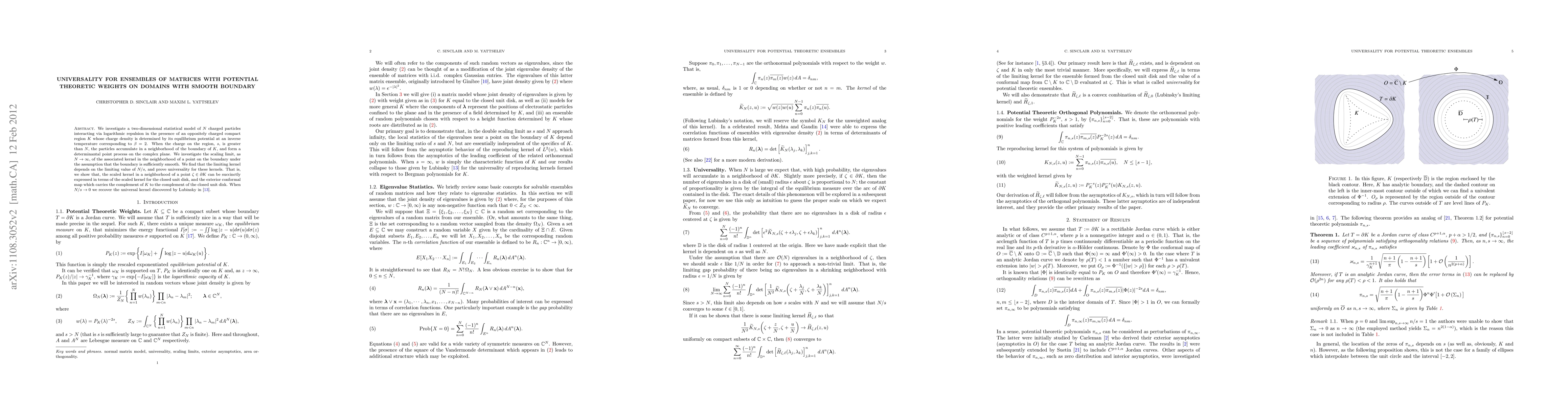 We investigate a two-dimensional statistical model of N charged particles interacting via logarithmic repulsion in the presence of an oppositely charged compact region K whose charge density is determined by its equilibrium potential at an inverse temperature corresponding to \beta = 2. When the charge on the region, s, is greater than N, the particles accumulate in a neighborhood of the boundary of K, and form a determinantal point process on the complex plane. We investigate the scaling limit, as N \to \infty, of the associated kernel in the neighborhood of a point on the boundary under the assumption that the boundary is sufficiently smooth. We find that the limiting kernel depends on the limiting value of N/s, and prove universality for these kernels. That is, we show that, the scaled kernel in a neighborhood of a point \zeta \in \partial K can be succinctly expressed in terms of the scaled kernel for the closed unit disk, and the exterior conformal map which carries the complement K to the complement of the closed unit disk. When N / s \to 0 we recover the universal kernel discovered by Doron Lubinsky in Universality type limits for Bergman orthogonal polynomials, Comput. Methods Funct. Theory, 10:135-154, 2010.