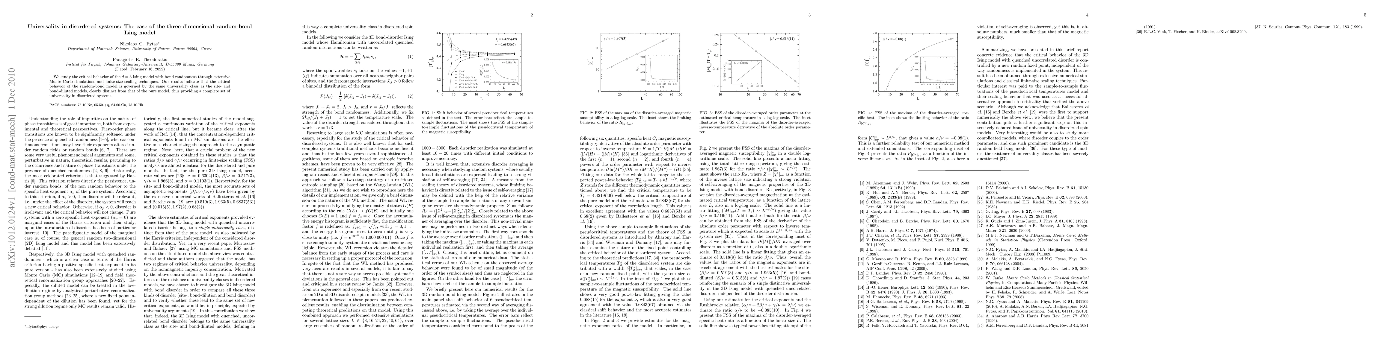 Summary: This study uses Monte Carlo simulations and finite-size scaling to investigate the critical behavior of the three-dimensional random-bond Ising model, revealing that it shares the same universality class as site- and bond-diluted models, differing from the pure model, thus completing the universality classification in disordered systems.