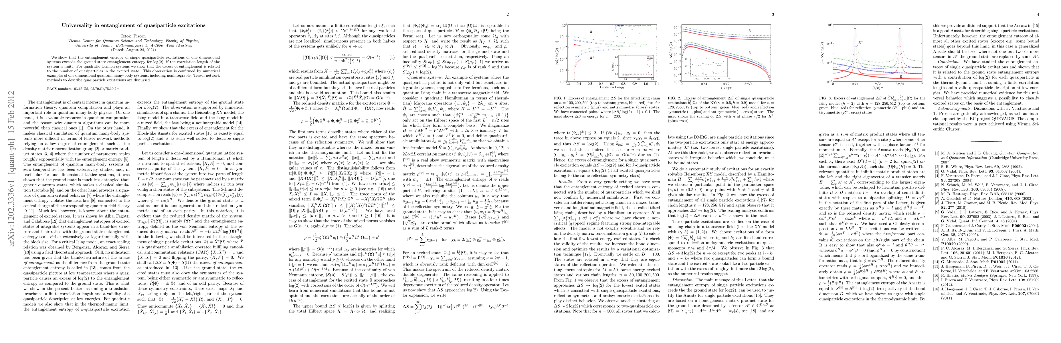 We show that the entanglement entropy of single quasiparticle excitations of one dimensional systems exceeds the ground state entanglement entropy for log(2), if the correlation length of the system is finite. For quadratic fermion systems we show that the excess of entanglement is related to the number of quasiparticles in the excited state. This observation is confirmed by numerical examples of one dimensional quantum many-body systems, including nonintegrable. Tensor network methods to describe quasiparticle excitations are discussed.