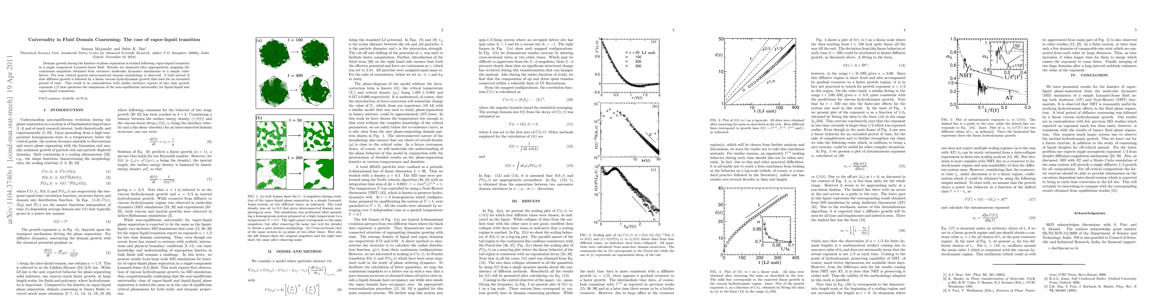 This study investigates the kinetics of phase separation during vapor-liquid transition in a Lennard-Jones fluid, revealing a linear viscous hydrodynamic growth phase after an initial slow diffusive phase. This contradicts previous reports and challenges the universality of non-equilibrium growth exponents in such transitions.