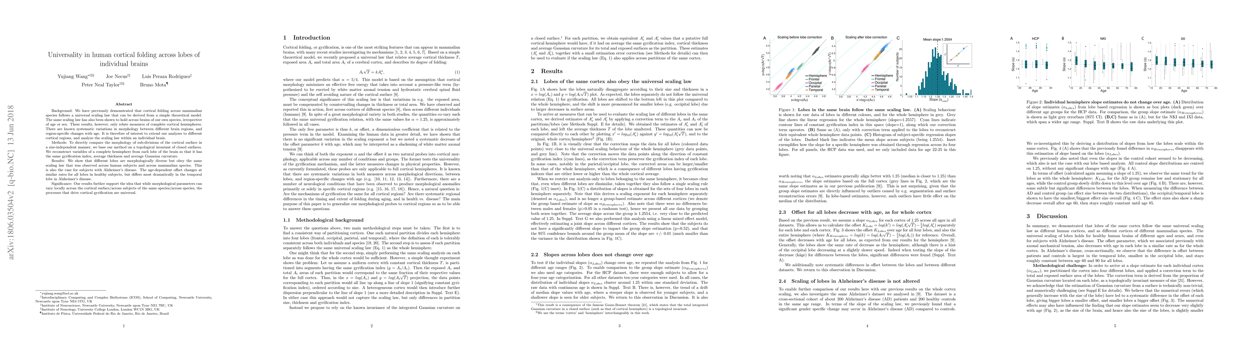 A study found that different brain lobes follow the same universal scaling law of cortical folding, despite regional variations and age-dependent changes in Alzheimer's disease.
