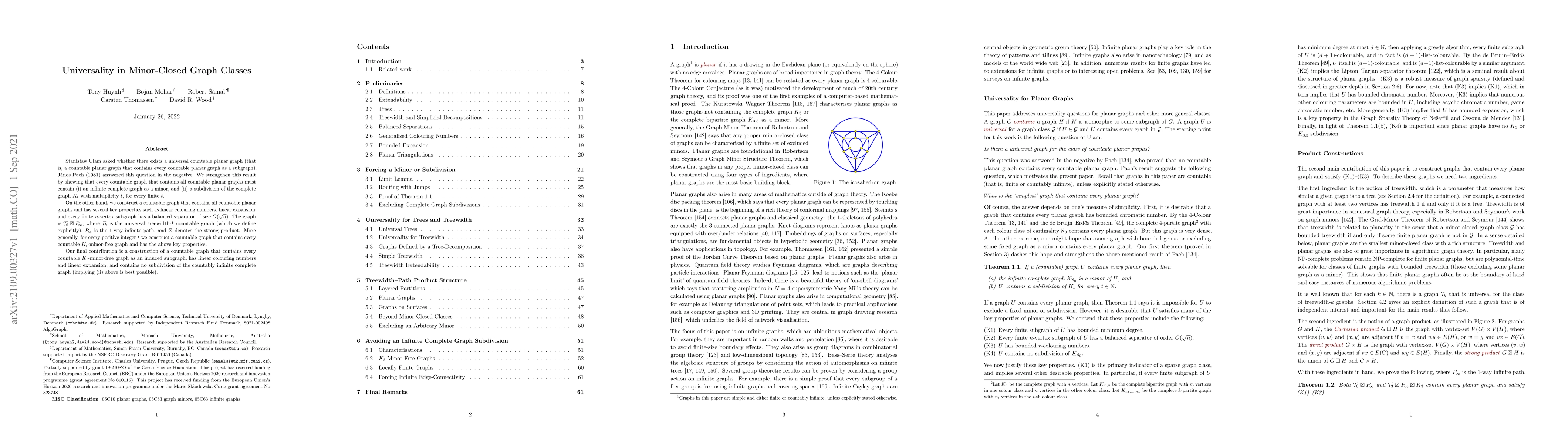 This work contributes to the understanding of graph universality and minor-closed graph classes, with implications for structural graph theory and computational complexity.